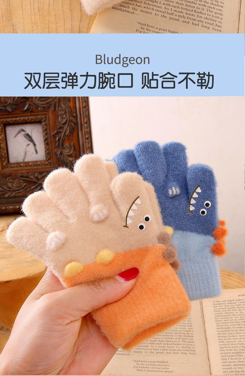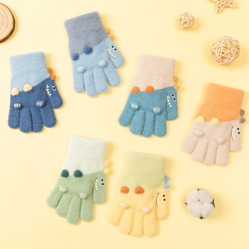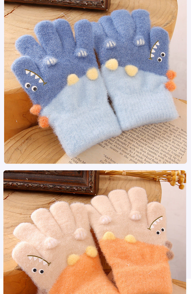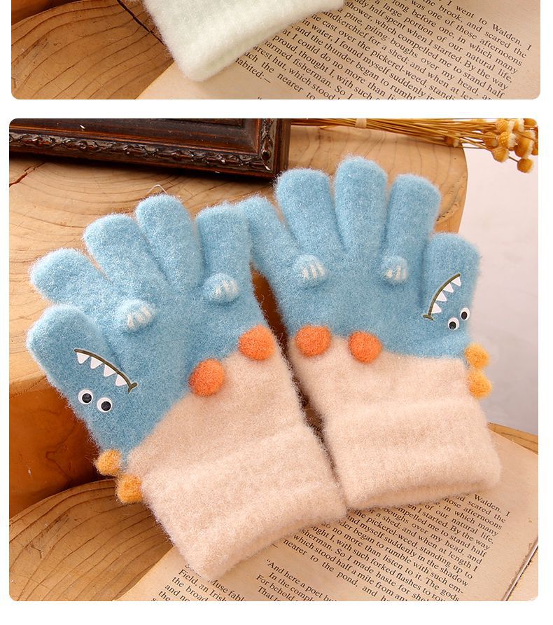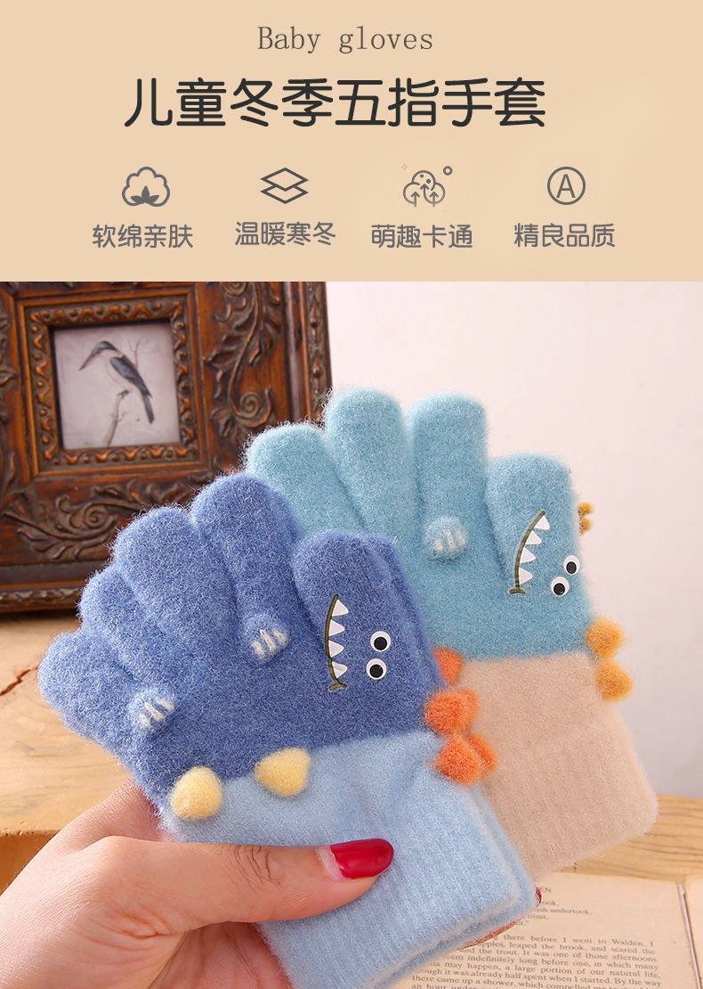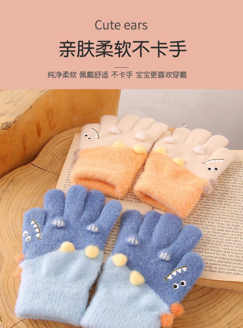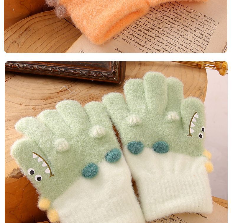 3-6 세 어린이 장갑 겨울 따뜻한 기모 다섯 손가락 세트 소년과 소녀 귀여운 만화 손가락 아기 니트