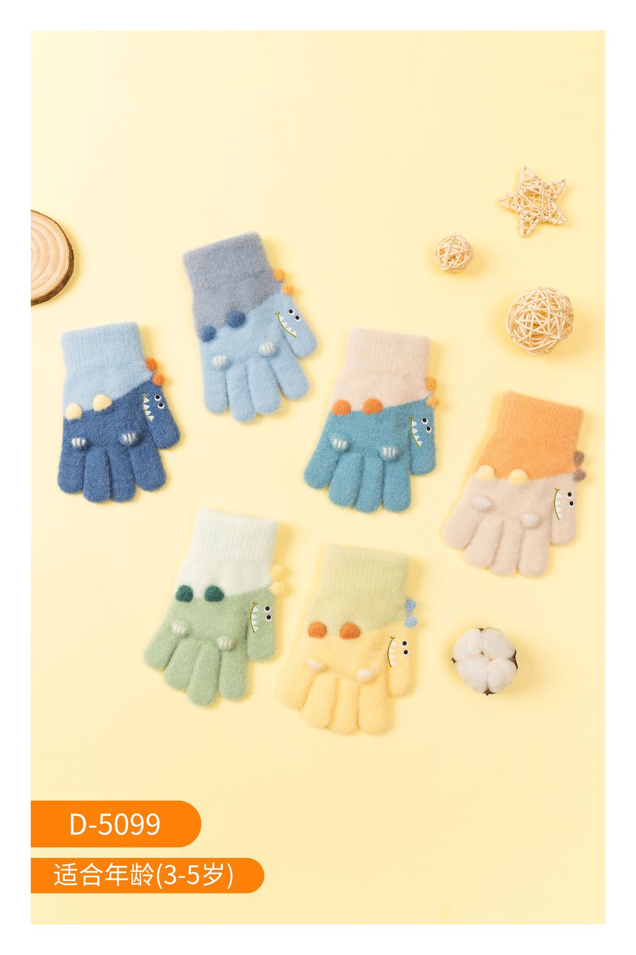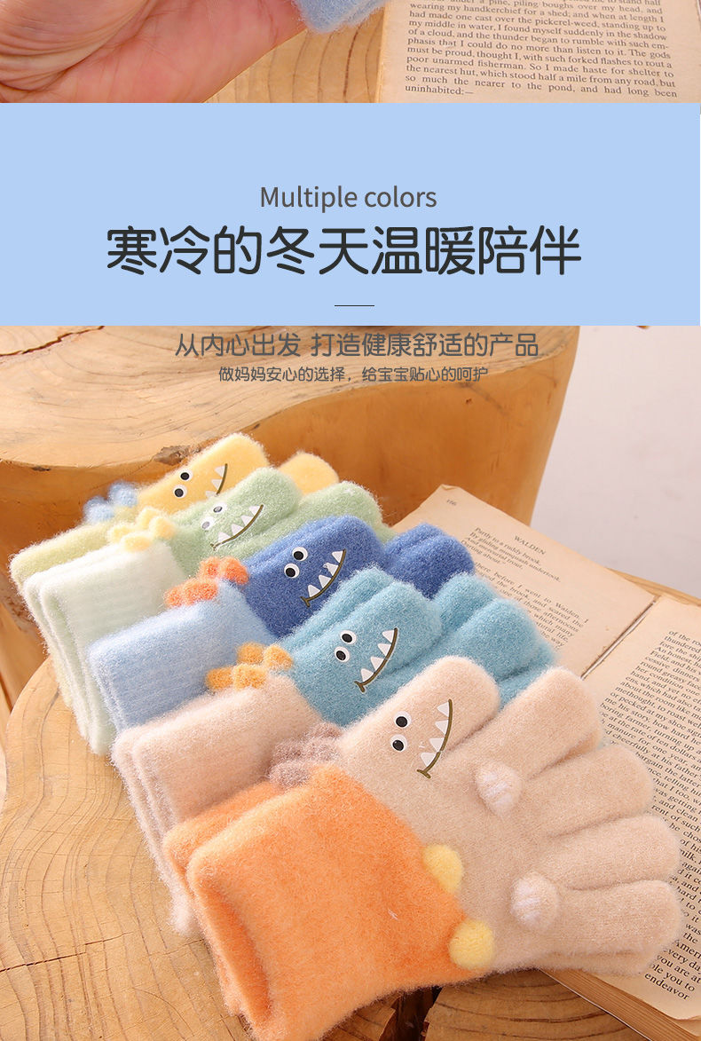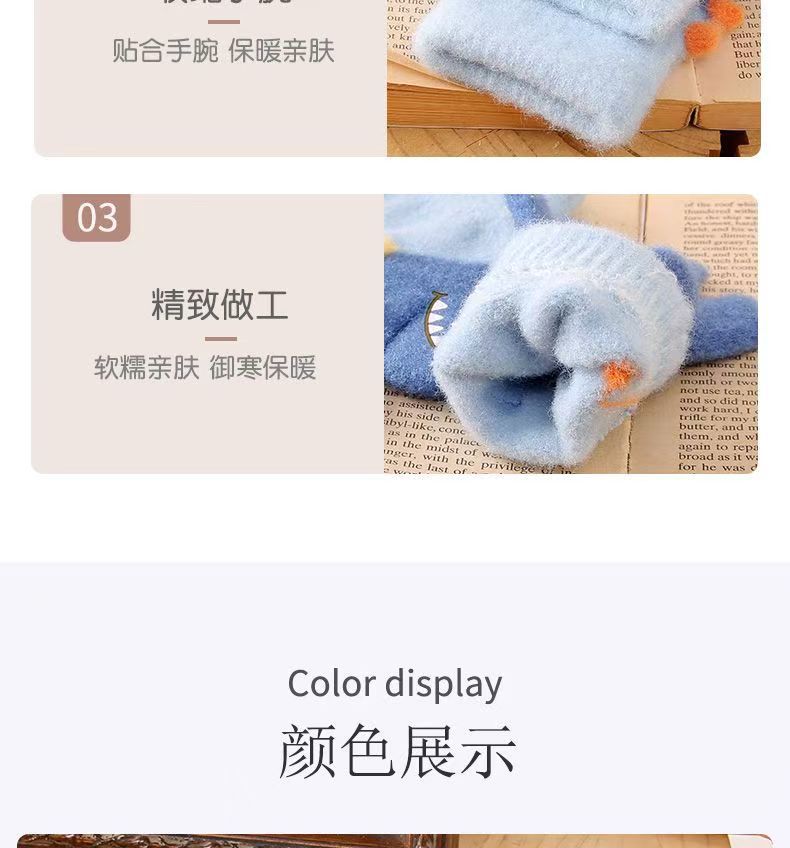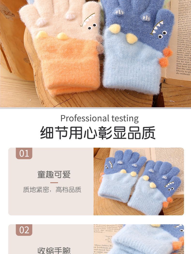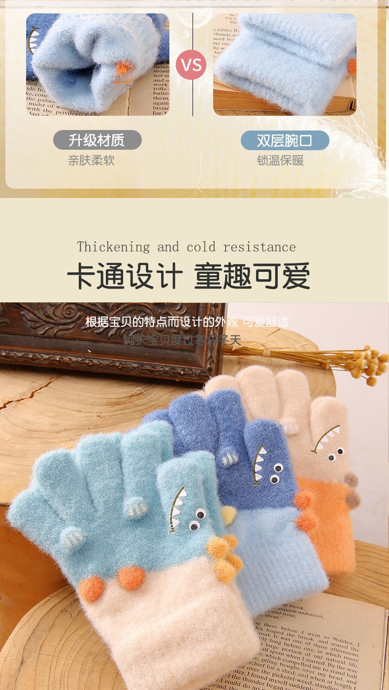 3-6 세 어린이 장갑 겨울 따뜻한 기모 다섯 손가락 세트 소년과 소녀 귀여운 만화 손가락 아기 니트