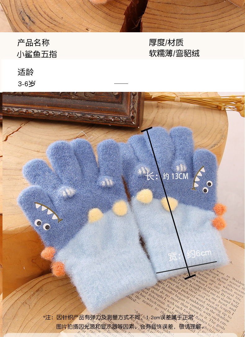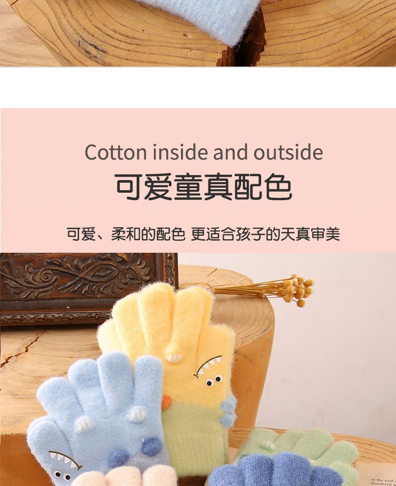 3-6 세 어린이 장갑 겨울 따뜻한 기모 다섯 손가락 세트 소년과 소녀 귀여운 만화 손가락 아기 니트스토어 가기