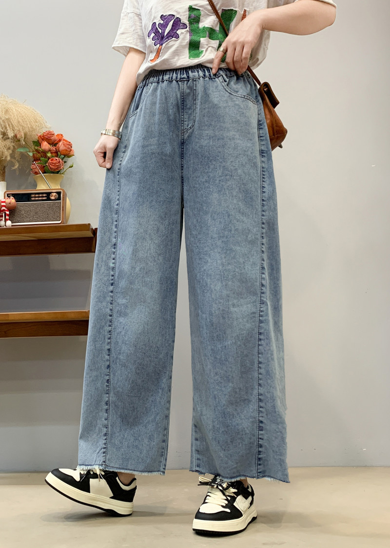 2025 봄 새로운 느슨한 큰 자수 꽃 탄성 허리 흰색 씻은 데님 바지 도매 조수