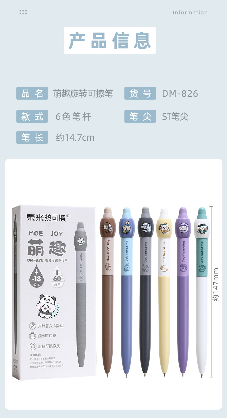 동미 826 모에 재미 지울 수있는 젤 펜 로타리 코어 감압 로타리 펜 귀여운 만화 초등학교 학생 크리스탈 블루 0.5