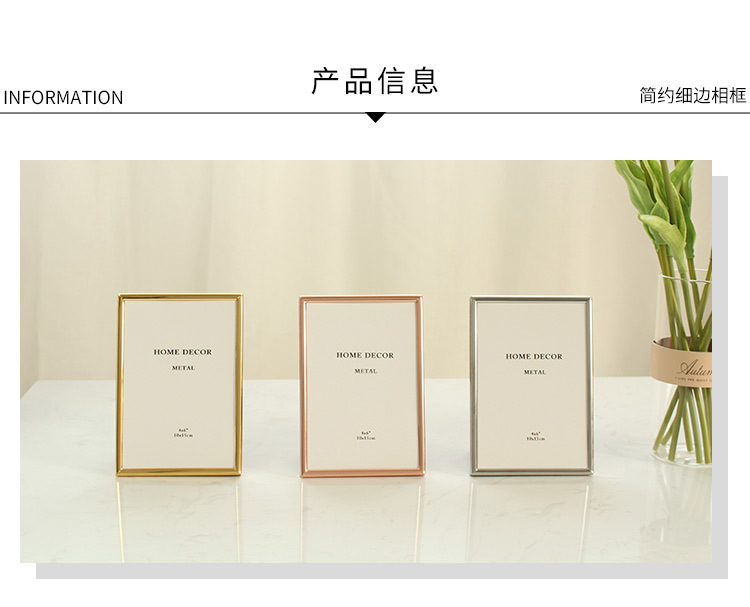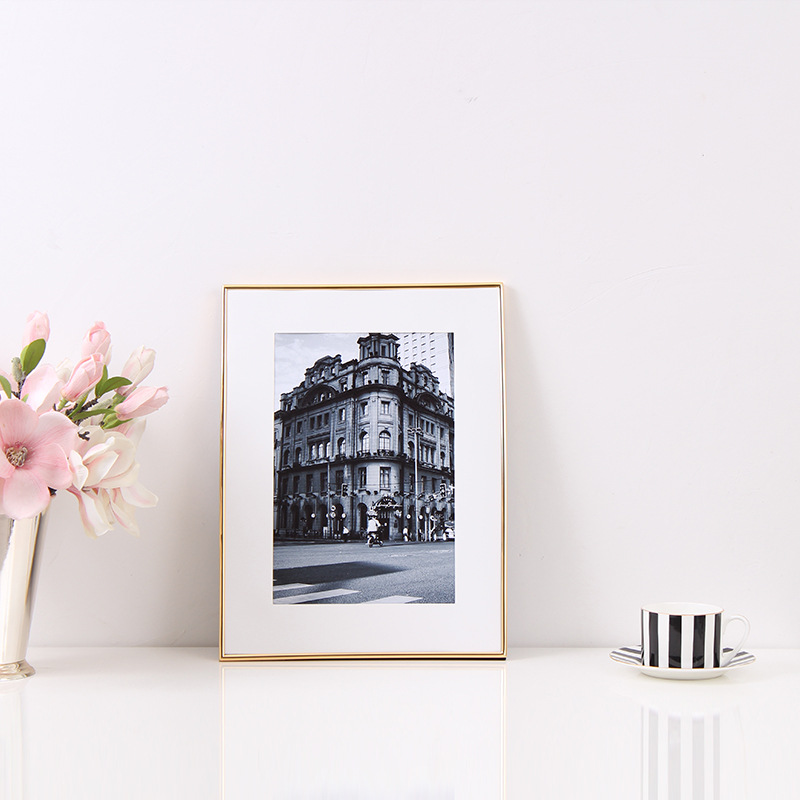 유럽 스타일의 간단한 얇은 가장자리 스타일 금속 사진 프레임 테이블 약철 금 16 인치 A3A4 벽 프레임