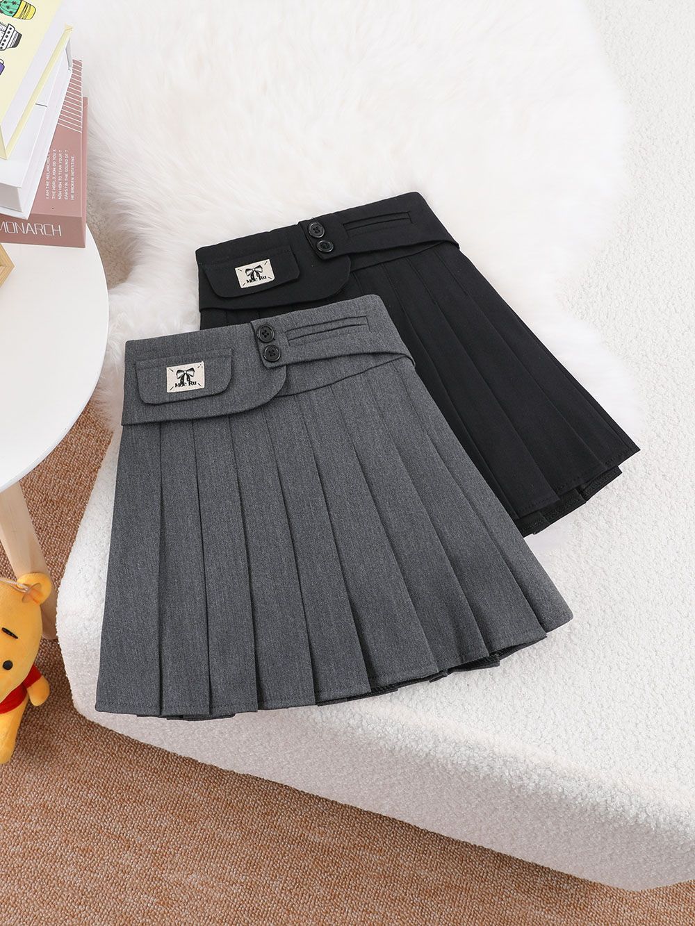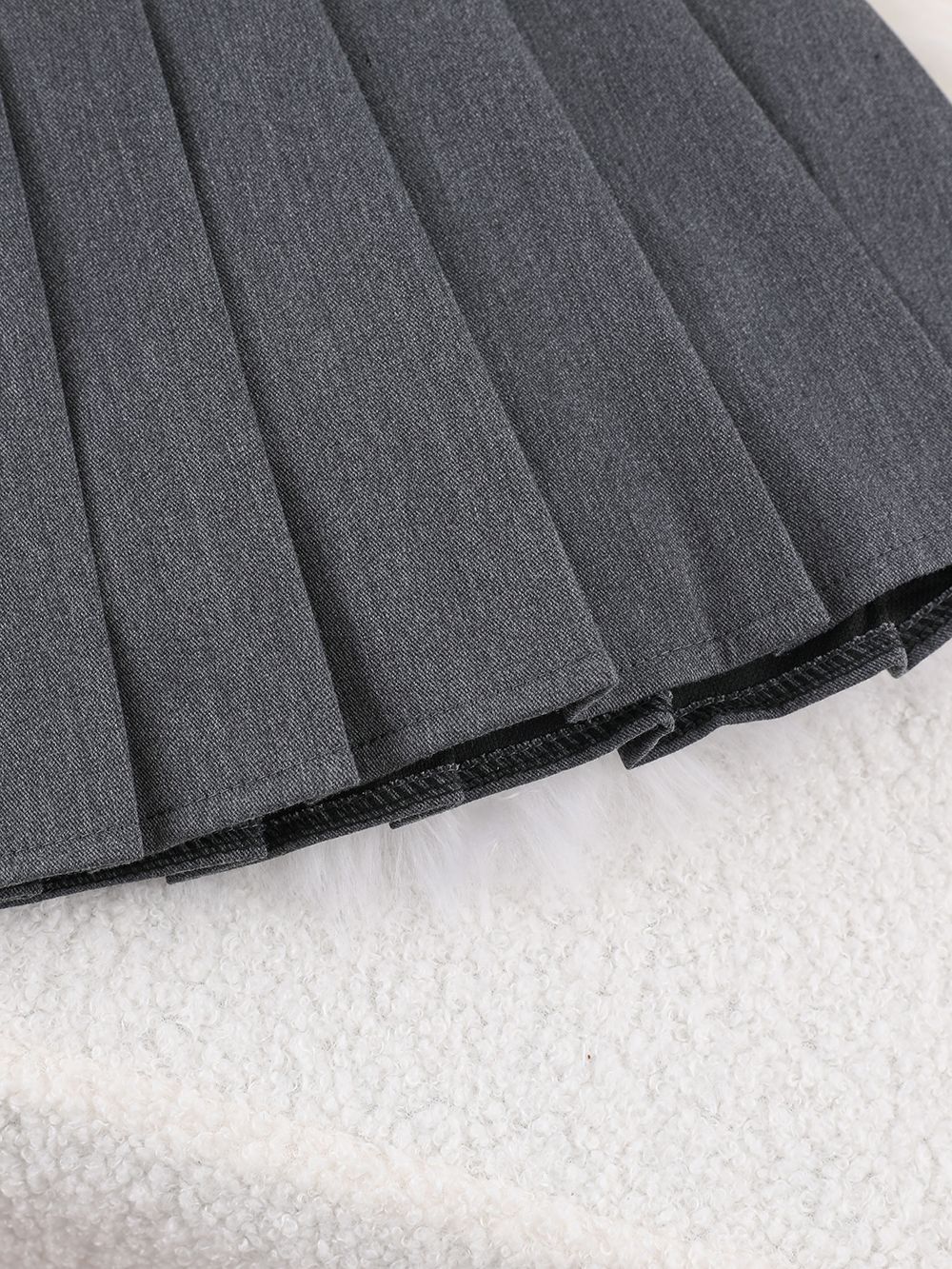 여자 치마 학술 스타일 짧은 치마 세트 소재 서양식 어린이 주름 치마 올매치 가을과 겨울 기모 두꺼운 JK 스타일