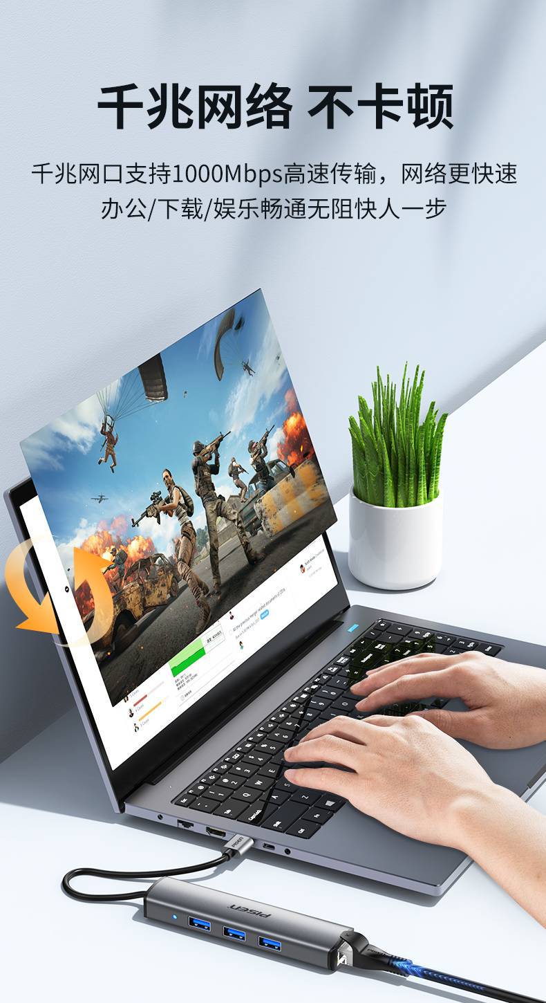 Pinsheng usb 기가비트 네트워크 카드 컴퓨터 노트북 익스텐더 허브 3.0 네트워크 포트 스플리터 1 4 허브스토어 가기