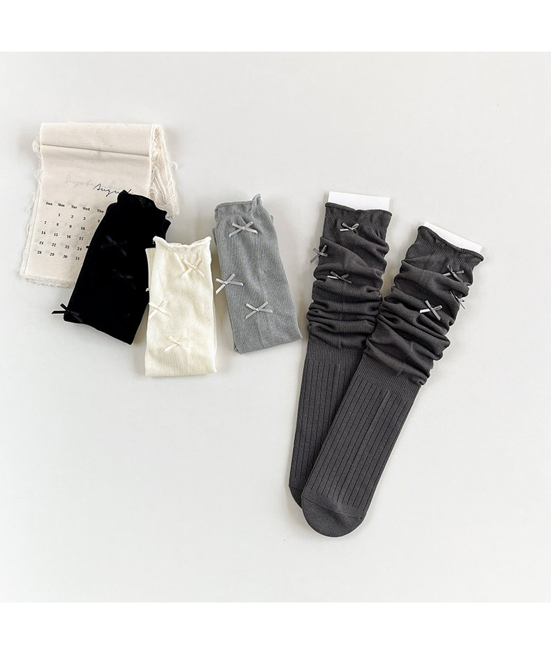 어린이 일본 무릎 양말 소녀 가을과 겨울 활 매듭 스택 양말 아기 겨울 다재다능한 코튼 스타일 트렌디