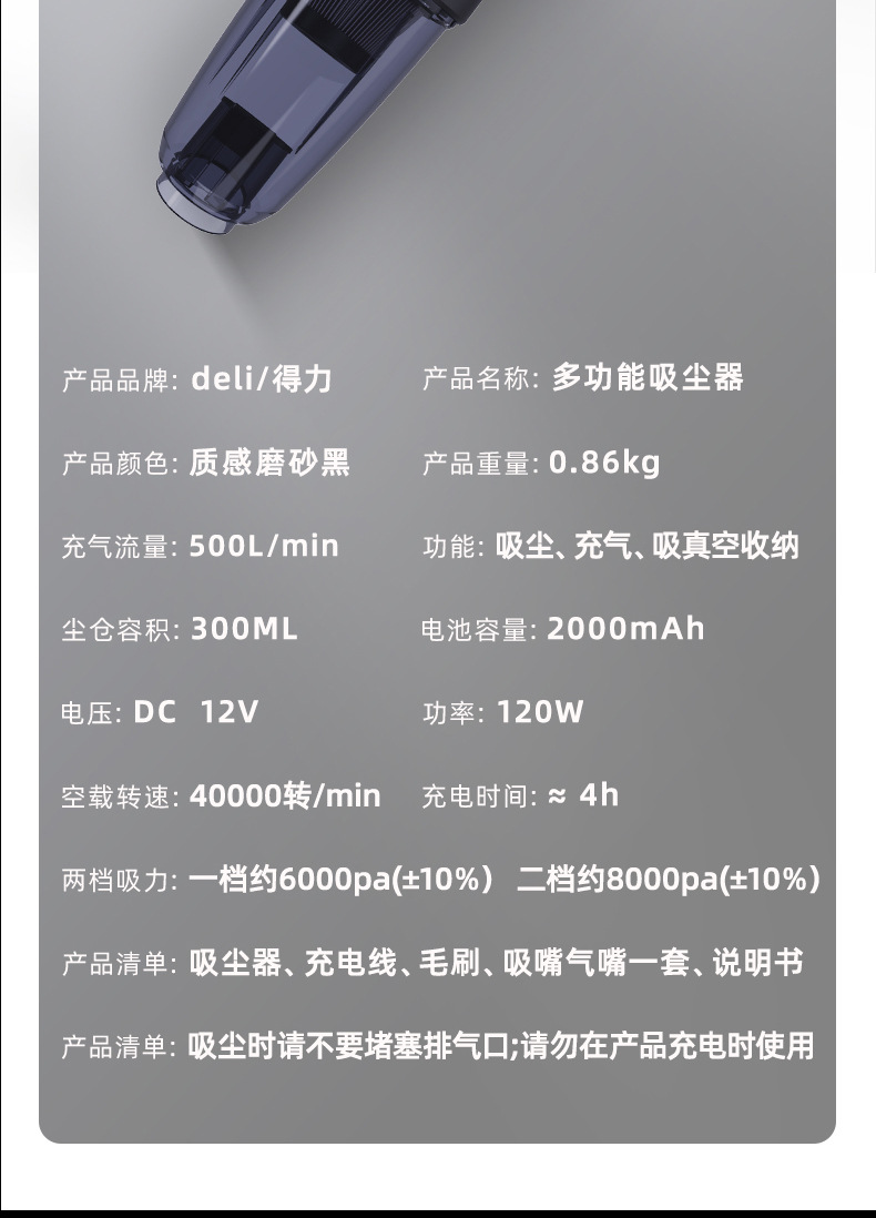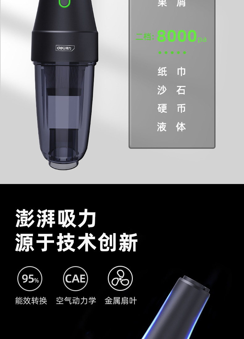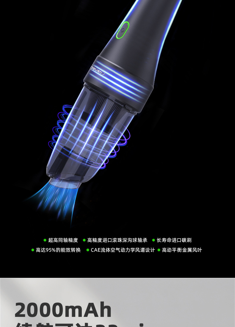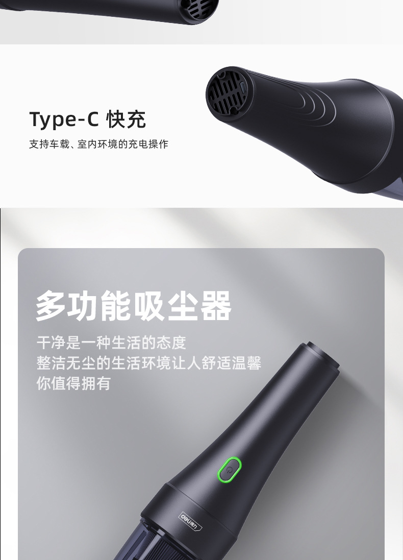 제조업체 공급 델리 대형 흡입 자동차 진공 청소기 가정용 소형 휴대용 자동차 무선 충전 진공 청소기