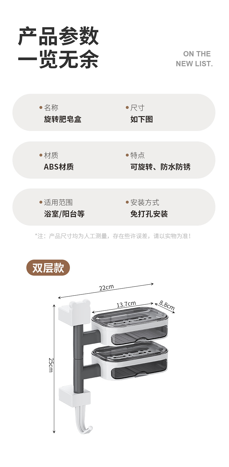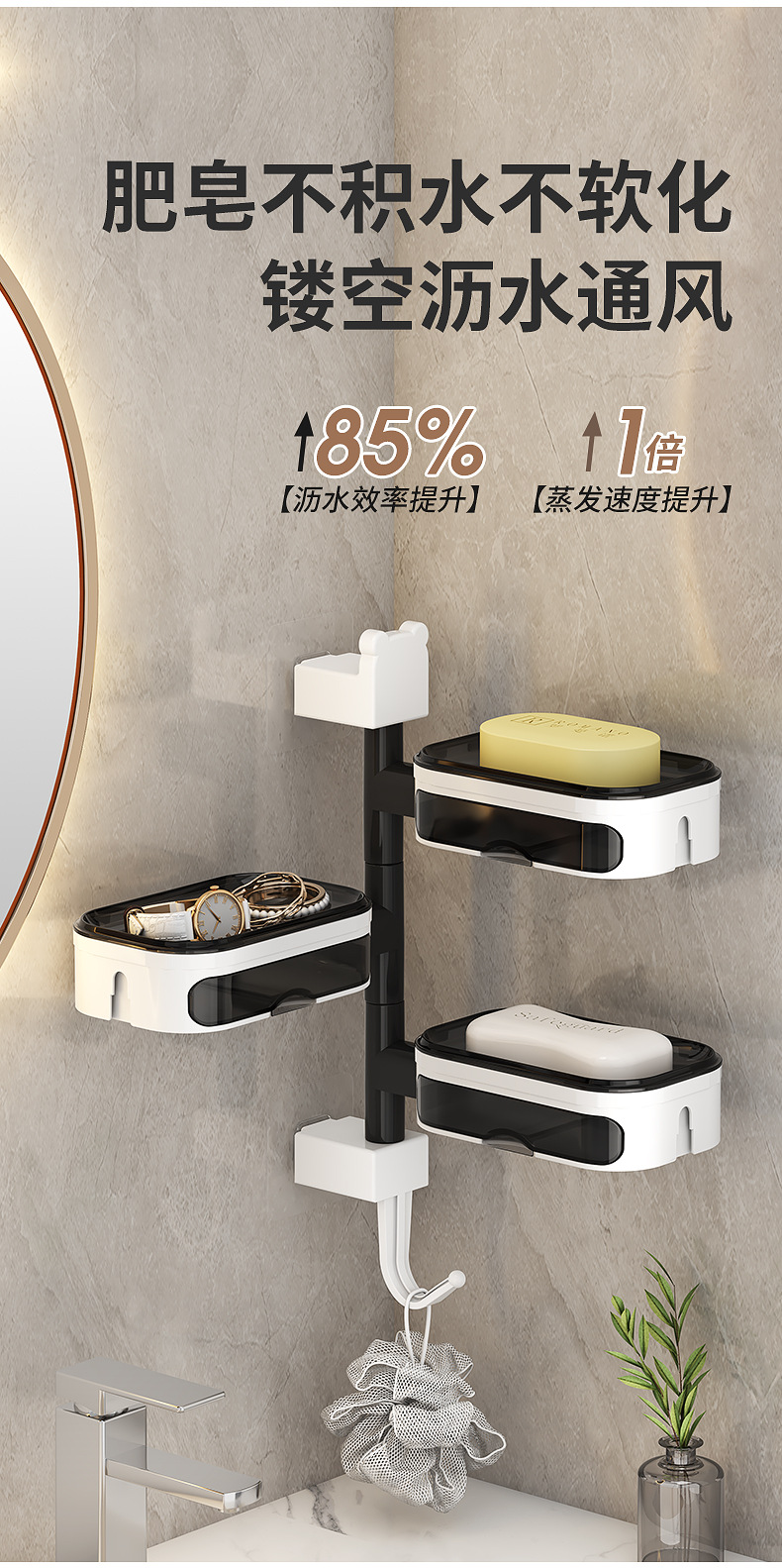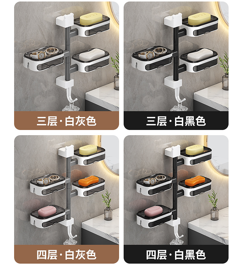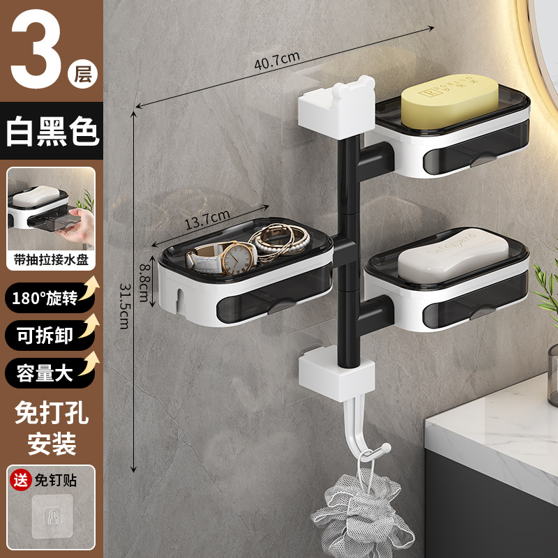 다기능 구멍이없는 회전 비누 상자 화장실 벽 장착 스토리지 랙 중공 배수 방청 및 방수