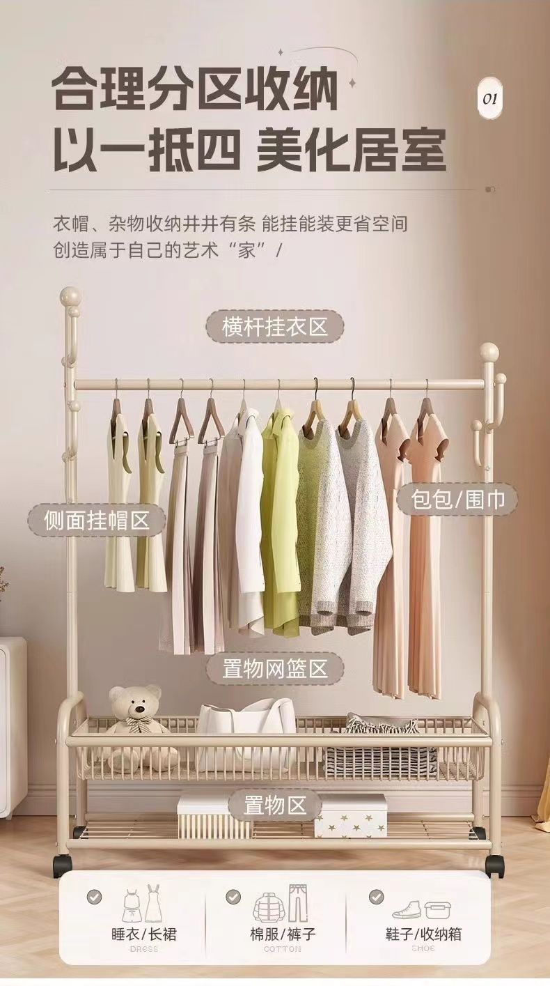 착륙 수직 옷걸이 침실 이동식 두꺼운 굵게 펴진 랙 가구 건조 랙 발코니 옷 교수형 선반