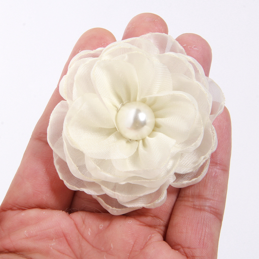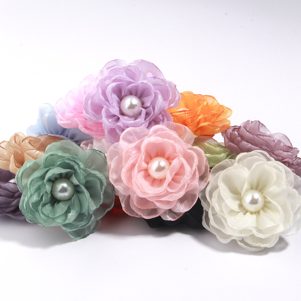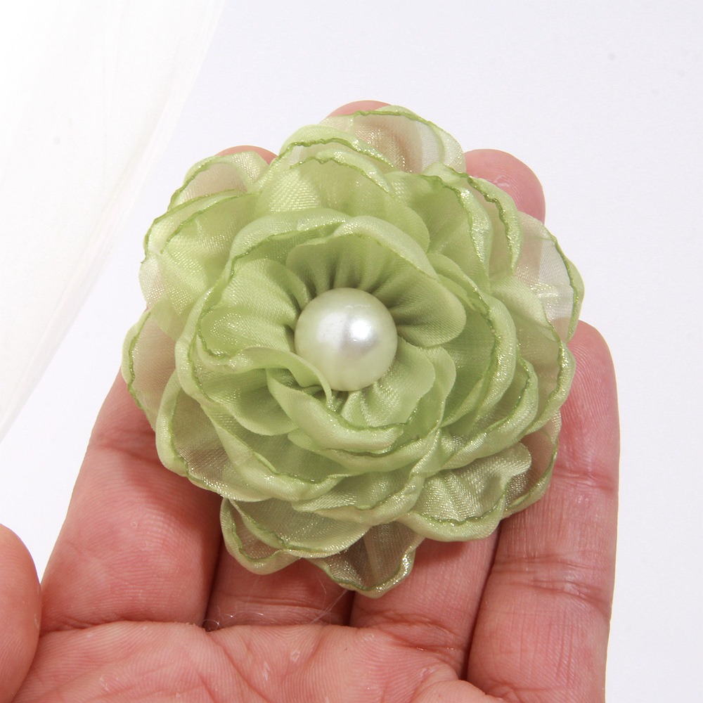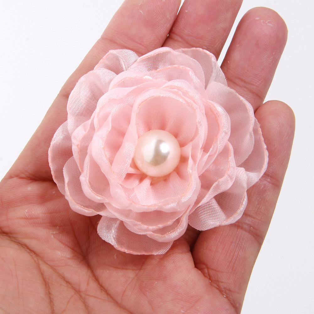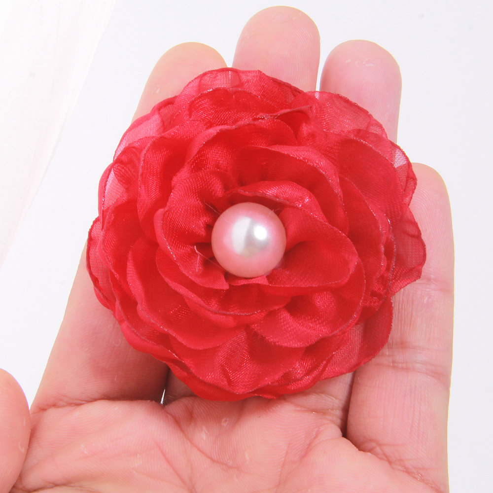 소스 제조 업체 동백 액세서리 수제 꽃 DIY 소재 굽기 가장자리 꽃 직물 꽃 액세서리 6cm