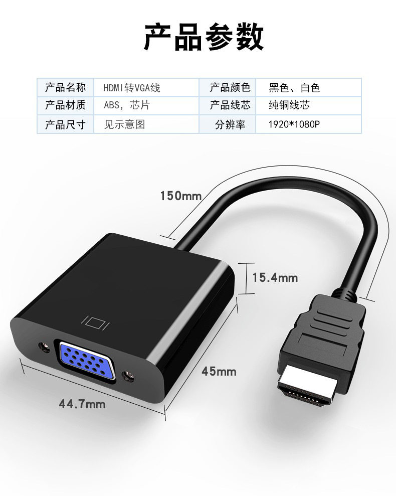 블랙 hdmi vga 컨버터 노트북 데스크톱 컴퓨터 셋톱 박스 프로젝터 어댑터 케이블 디스플레이