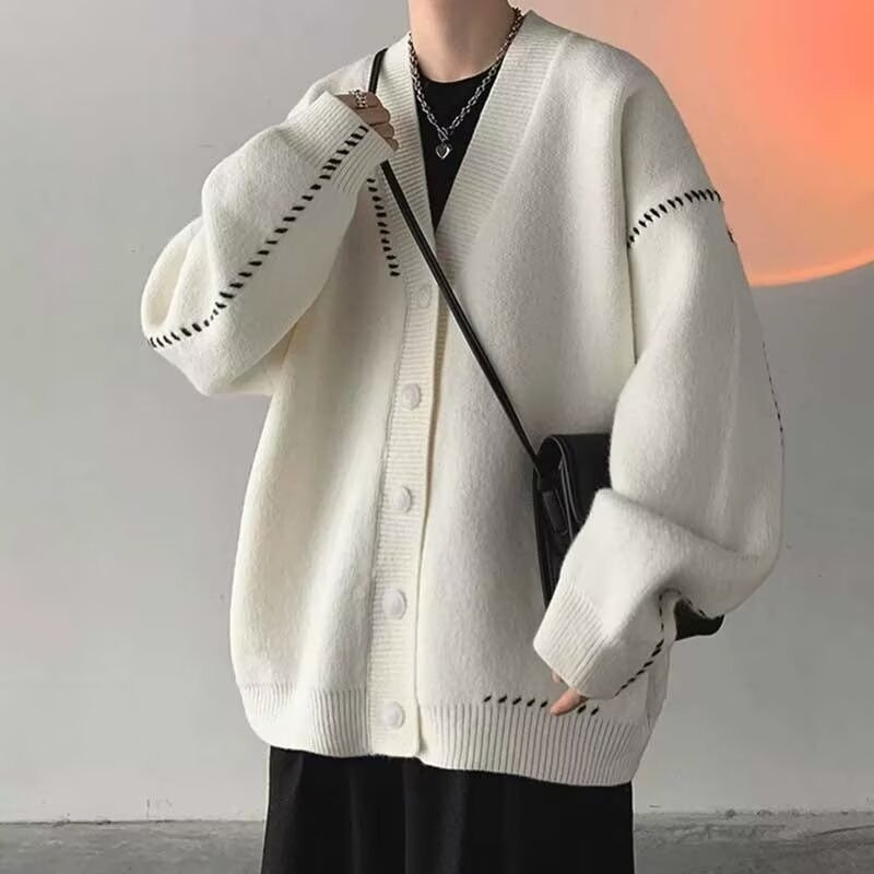 스웨터 남자 가을 겨울 카디건 한국 느슨한 V 넥 니트 스웨터 따뜻한 디자인 센스 캐주얼 스웨터스토어 가기