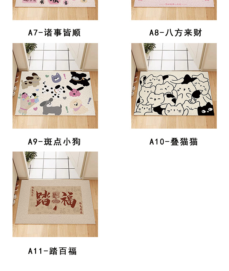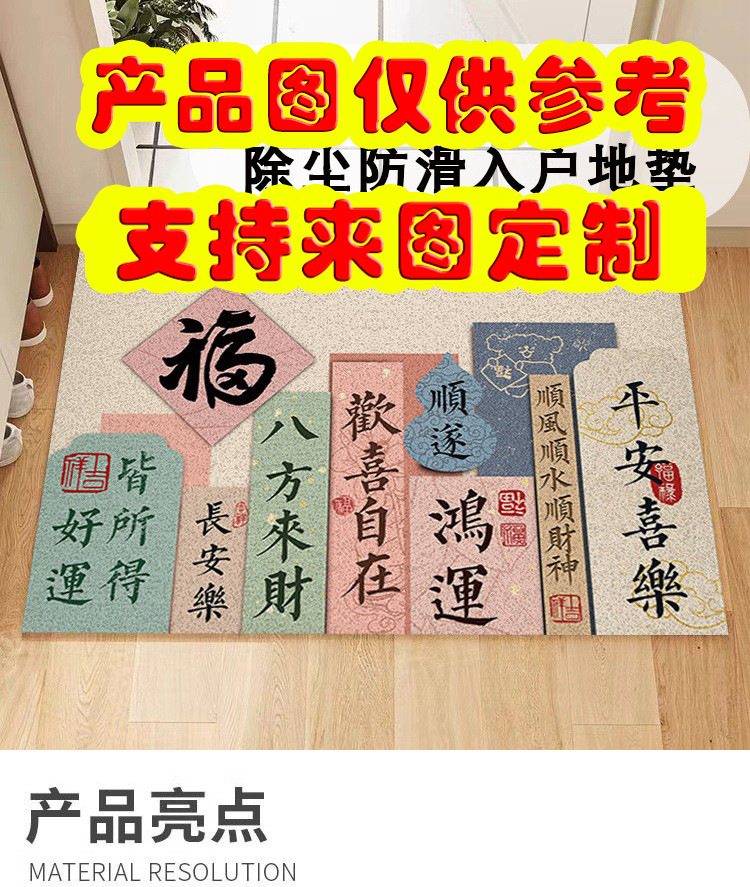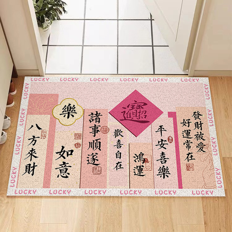 실링크 바닥 매트, 만화 스타일의 축복의 상징, 현관 입구 바닥 매트, 정사각형, 축복이 가득한 실내 및 실외 바닥 매트, 내마모성스토어 가기