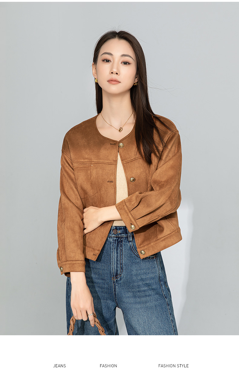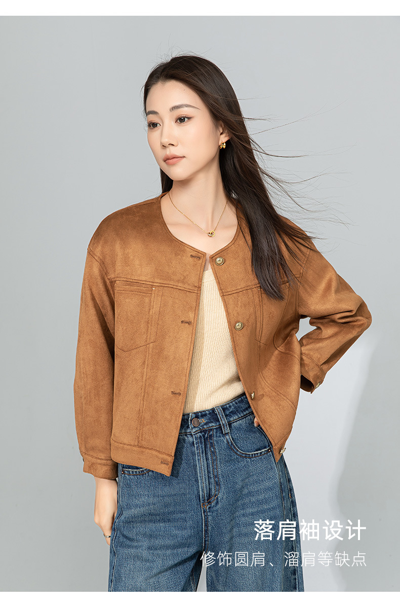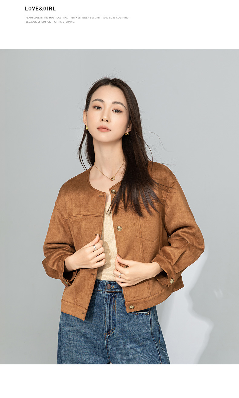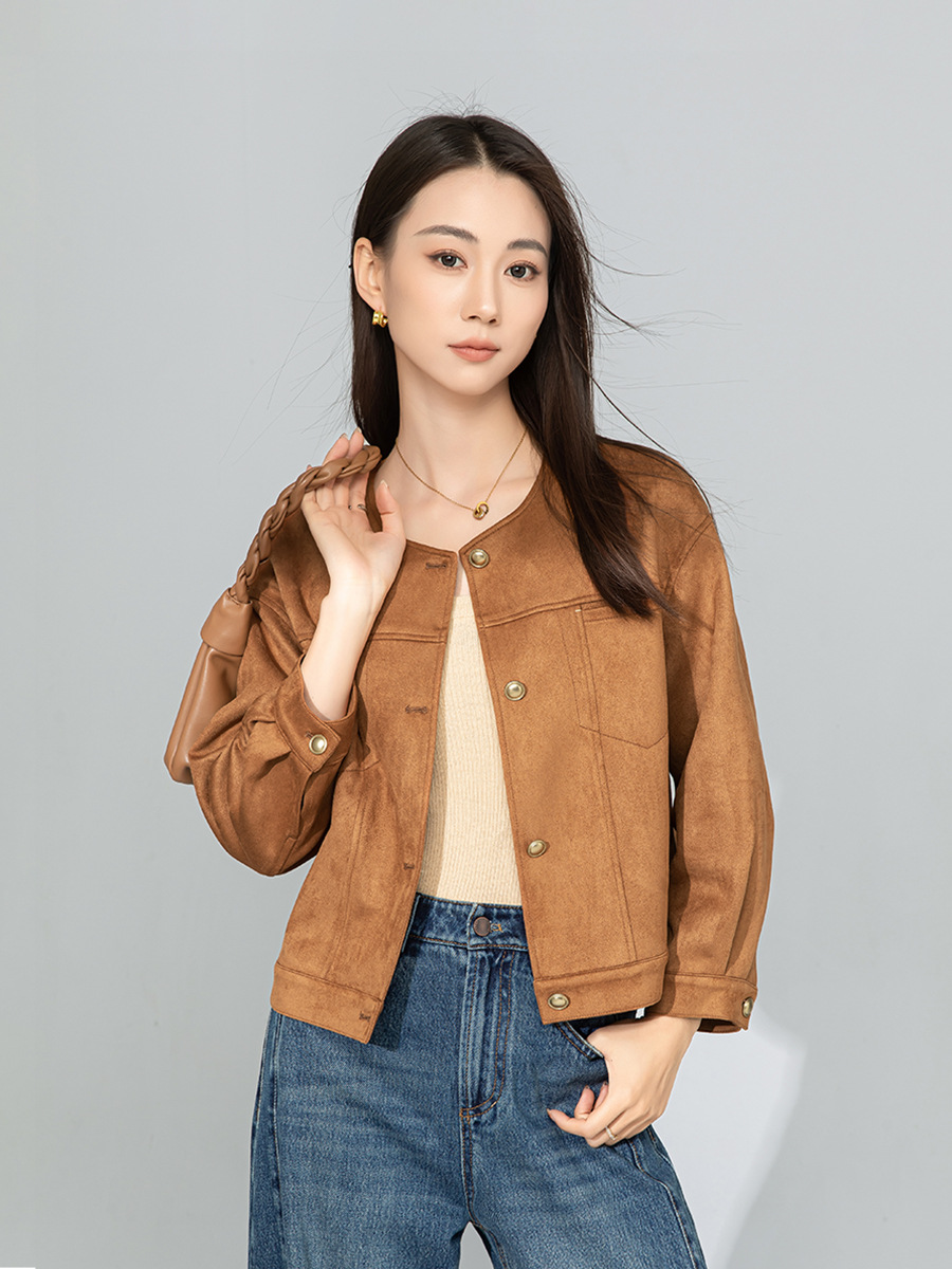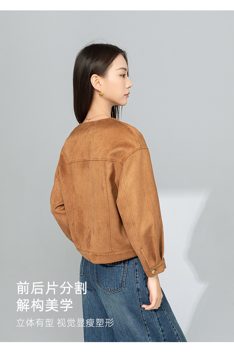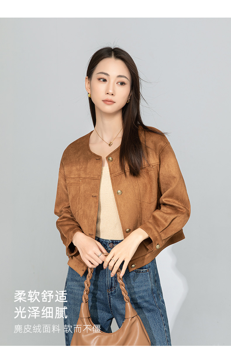 Xinge Maillard 스웨이드 쇼트 재킷 2025 봄 여성의 새로운 우아한 틈새 크루 넥 오토바이 재킷스토어 가기