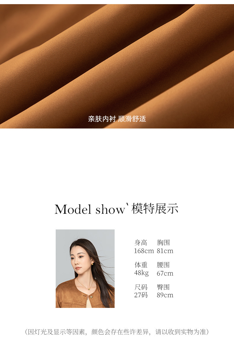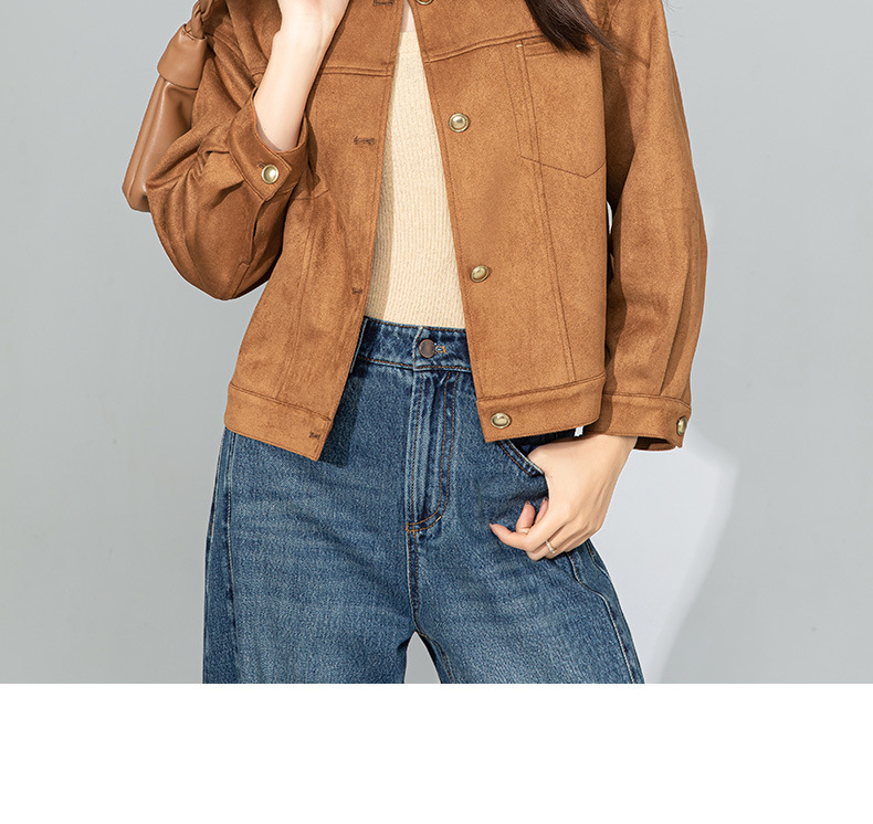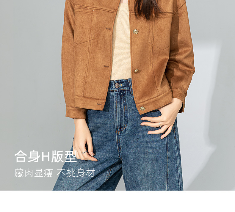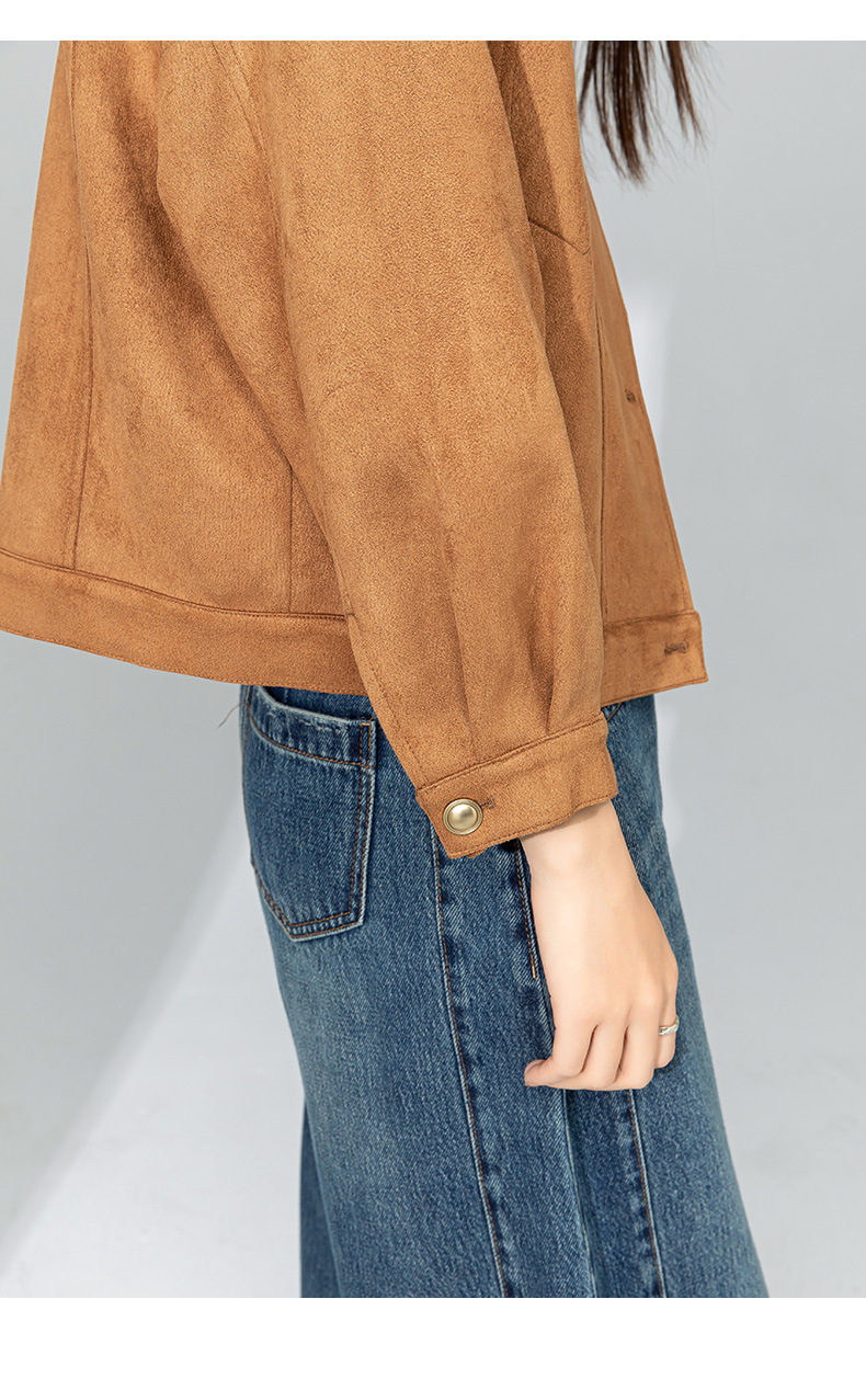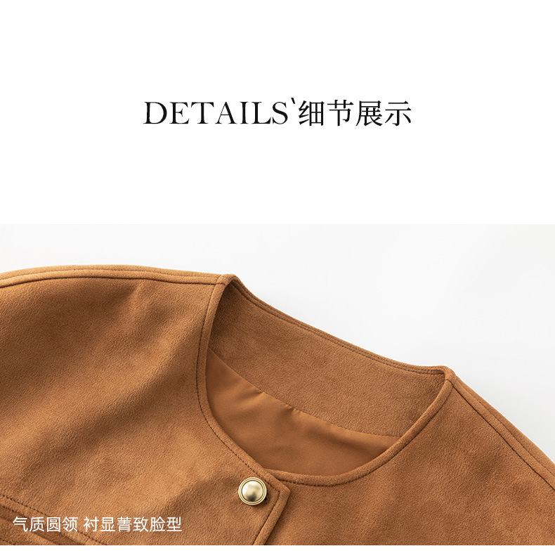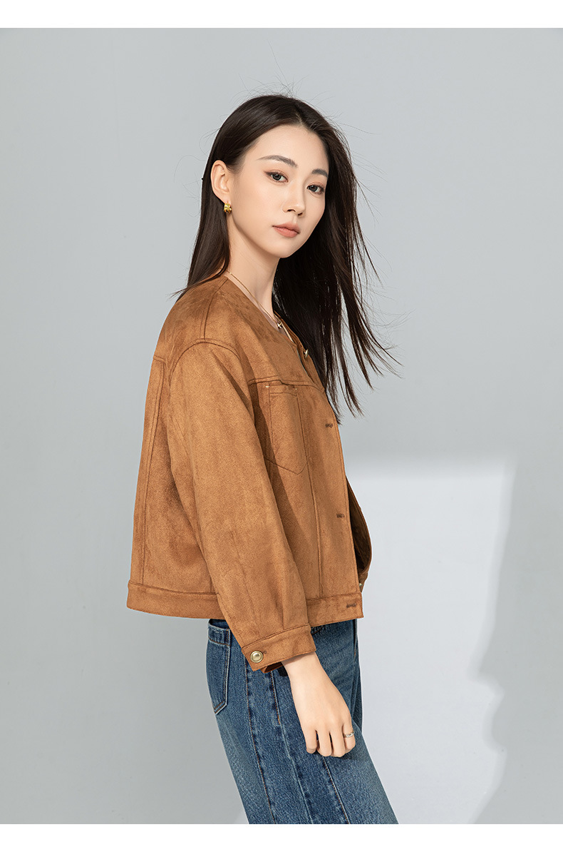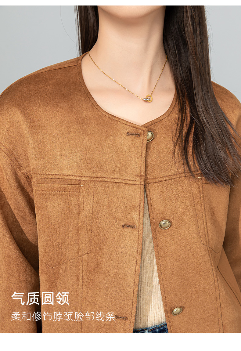 Xinge Maillard 스웨이드 쇼트 재킷 2025 봄 여성의 새로운 우아한 틈새 크루 넥 오토바이 재킷스토어 가기