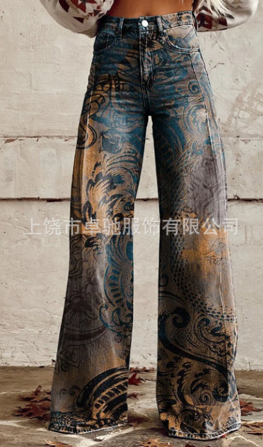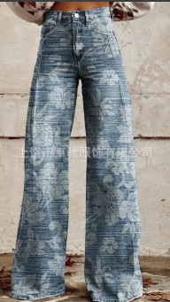 2025 대외 무역 국경 독립 역 이베이 유럽과 미국의 대외 무역 플러스 사이즈 여성 캐주얼 바지 얇은 모방 청바지 넓은 다리스토어 가기