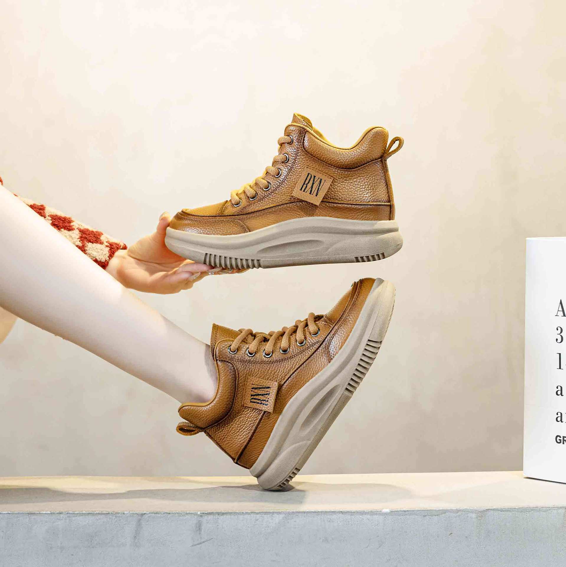 1층 소가죽 여성화 2025 겨울 신작 벨벳 하이탑 슈즈 여성 캐주얼 슈즈 여성 복고 스니커즈 여성 운동화스토어 가기