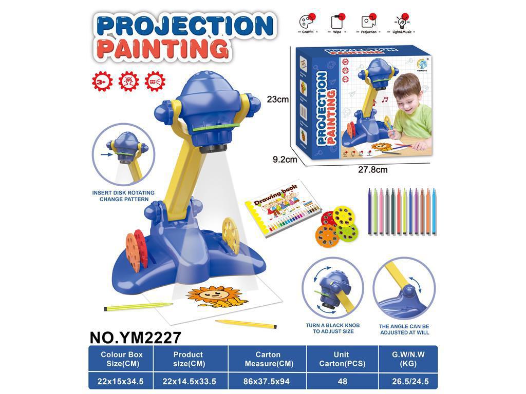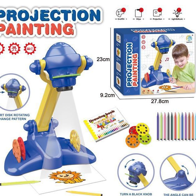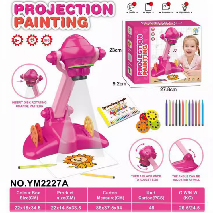 국경 간 새로운 어린이 프로젝션 페인팅 기계 계몽주의 조기 교육 드로잉 보드 테이블 라이트 음악 쓰기 보드 낙서 장난감스토어 가기