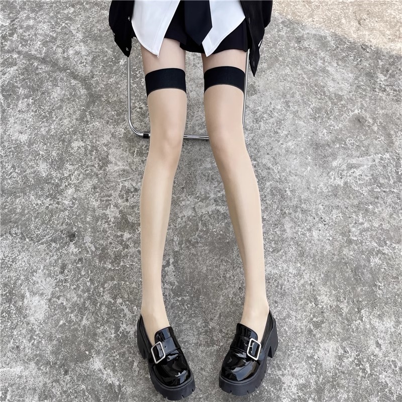 분위기 블랙 실크 레드 엣지 섹시한 얇은 실리콘 미끄럼 방지 순수한 긴 양말 블랙 알몸 무릎 양말스토어 가기