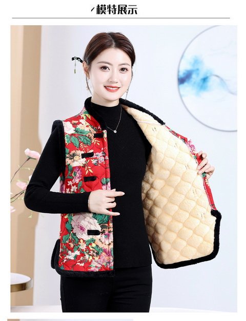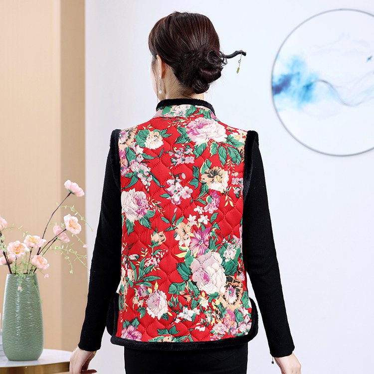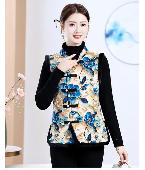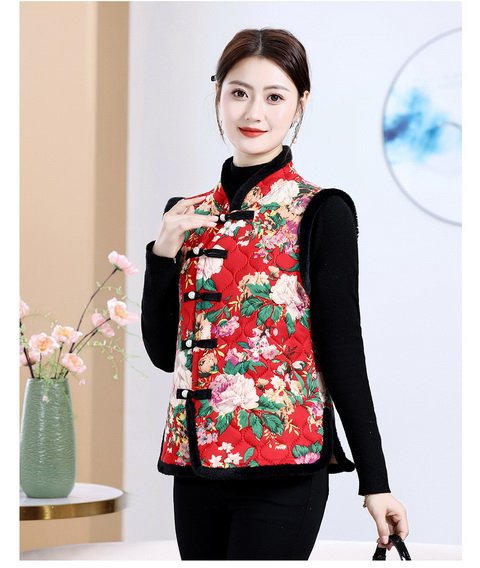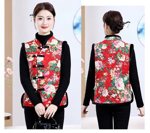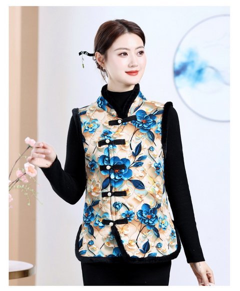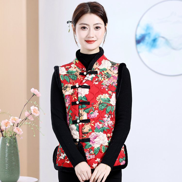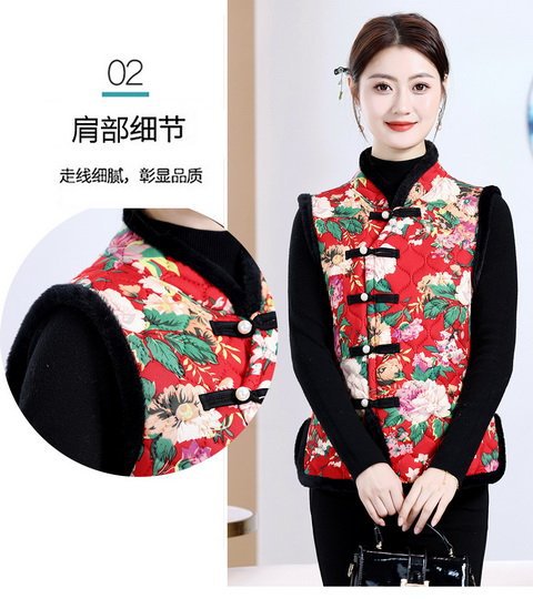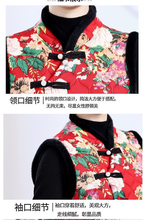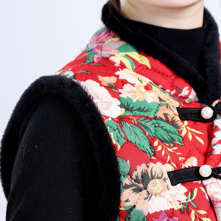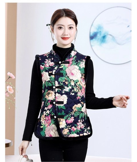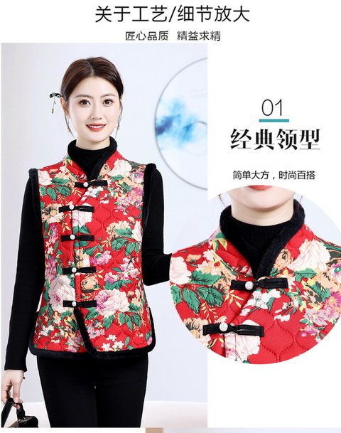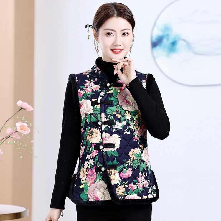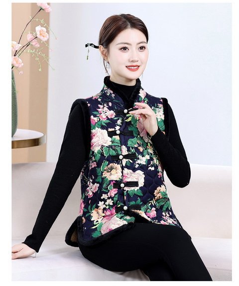 Daifa Northeast Big Flower Vest 여성 국가 스타일 버클 코튼 패딩 재킷 가을 및 겨울 기모 조끼 공연 의류 연례 회의 공연 옷스토어 가기