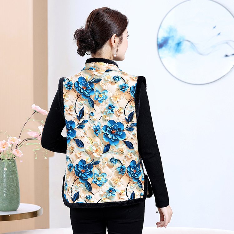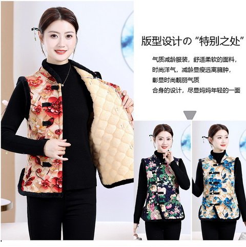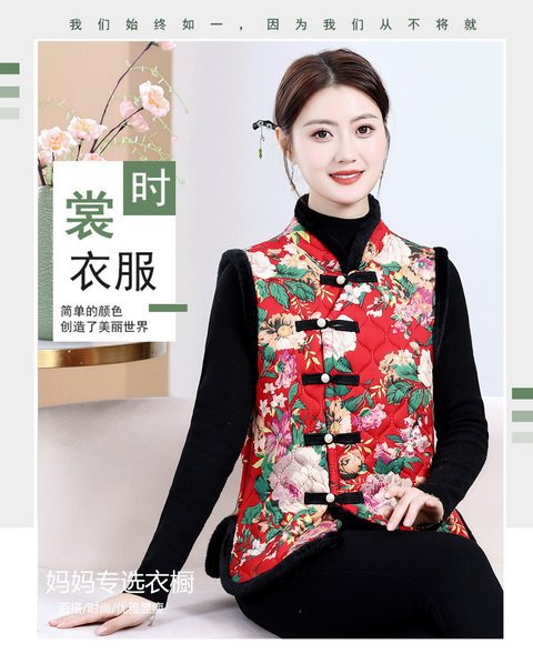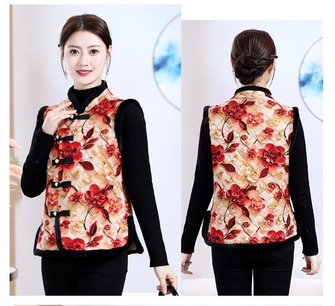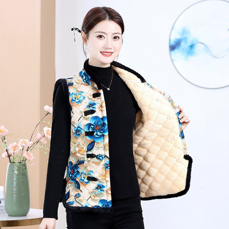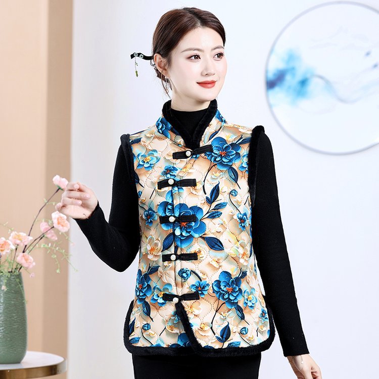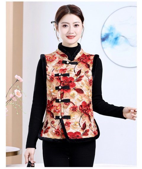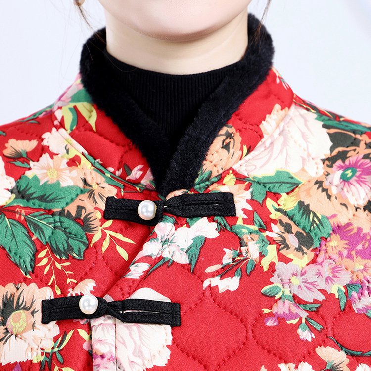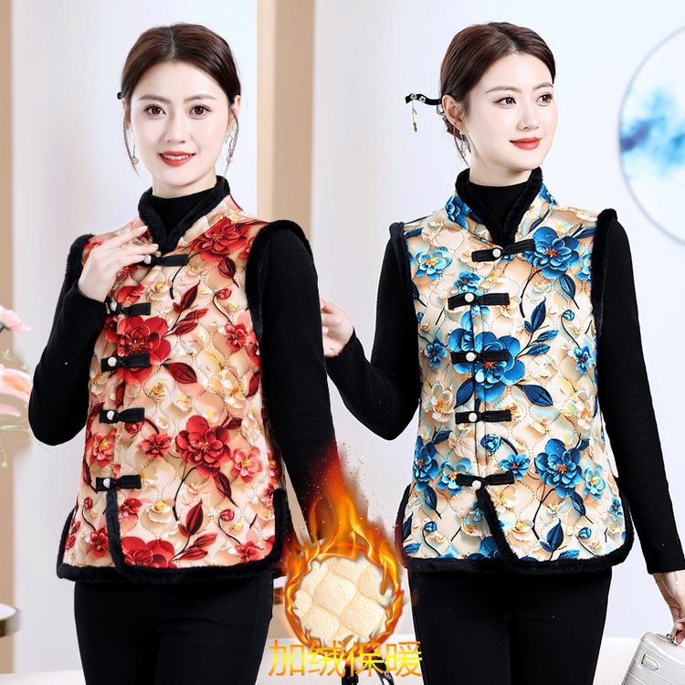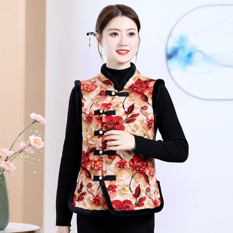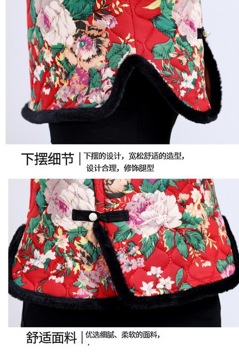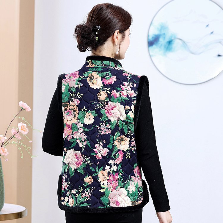 Daifa Northeast Big Flower Vest 여성 국가 스타일 버클 코튼 패딩 재킷 가을 및 겨울 기모 조끼 공연 의류 연례 회의 공연 옷스토어 가기