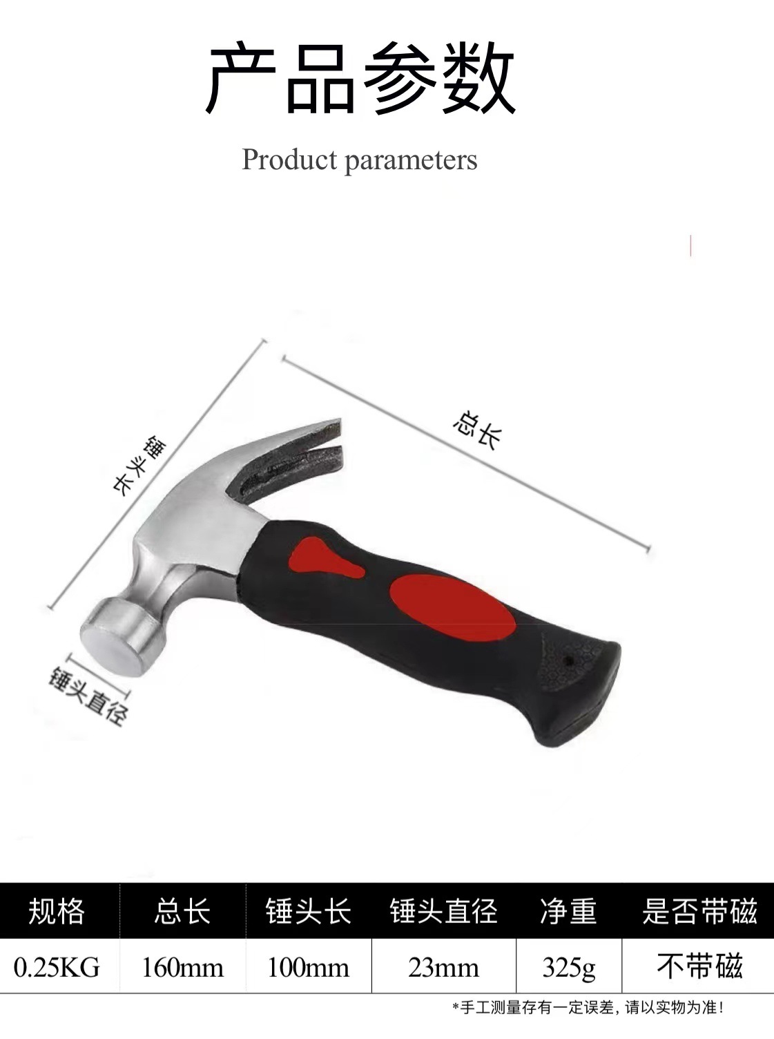 • 플라스틱 코팅 손잡이 클로 해머 0.25kg