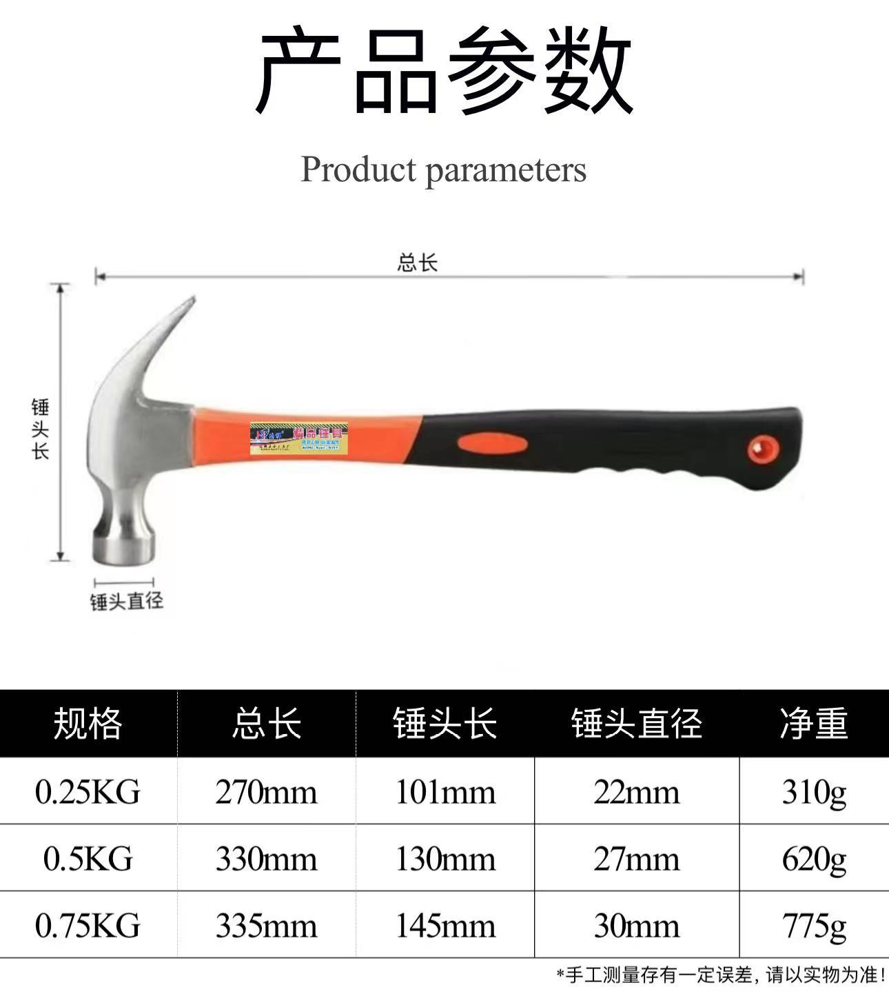 • 플라스틱 코팅 손잡이 클로 해머 0.5kg