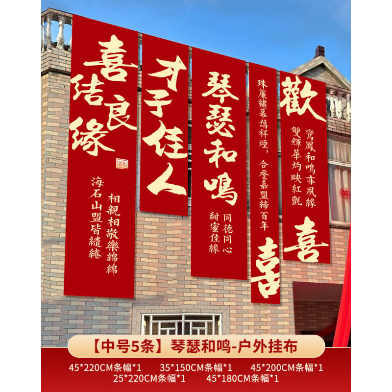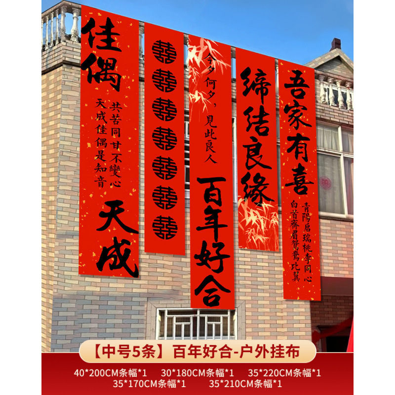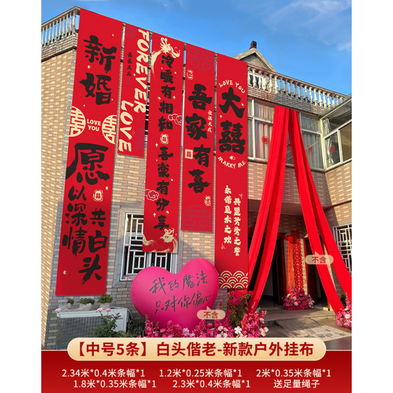 농촌 웨딩 야드 장식 웨딩 룸 배열 세트 결혼식 옷감 코트야드 빌라 외부 벽 배너 긴 스트립 안녕하세요