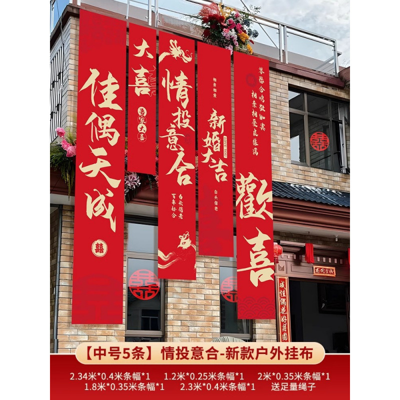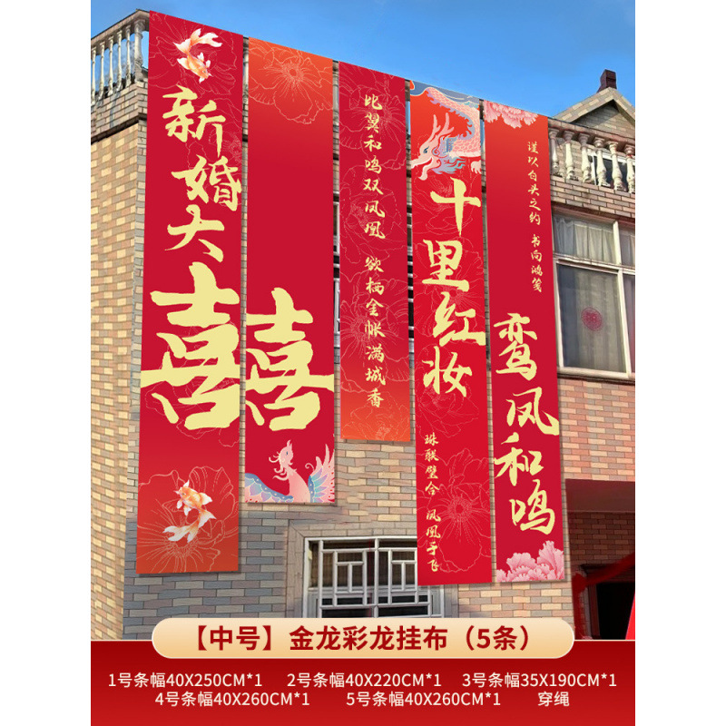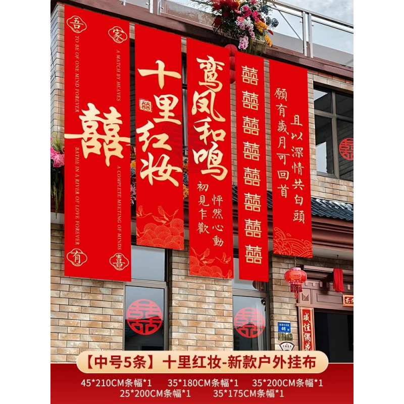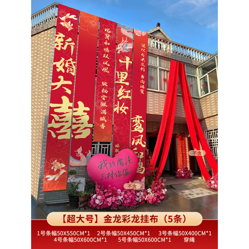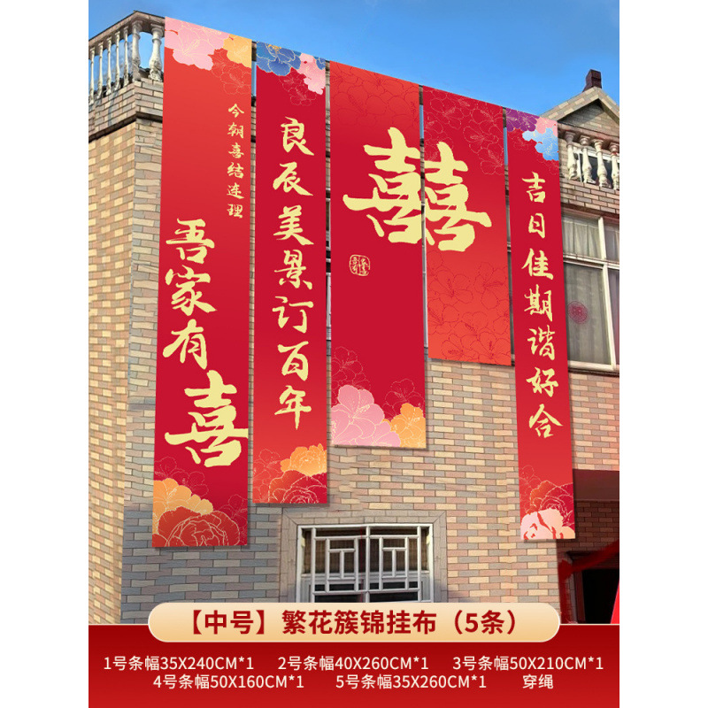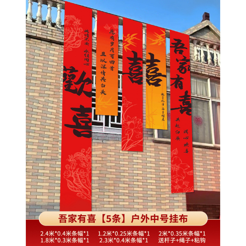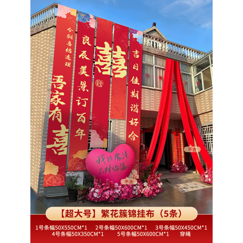 농촌 웨딩 야드 장식 웨딩 룸 배열 세트 결혼식 옷감 코트야드 빌라 외부 벽 배너 긴 스트립 안녕하세요스토어 가기