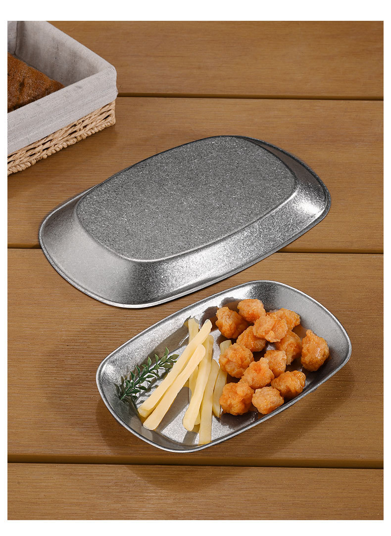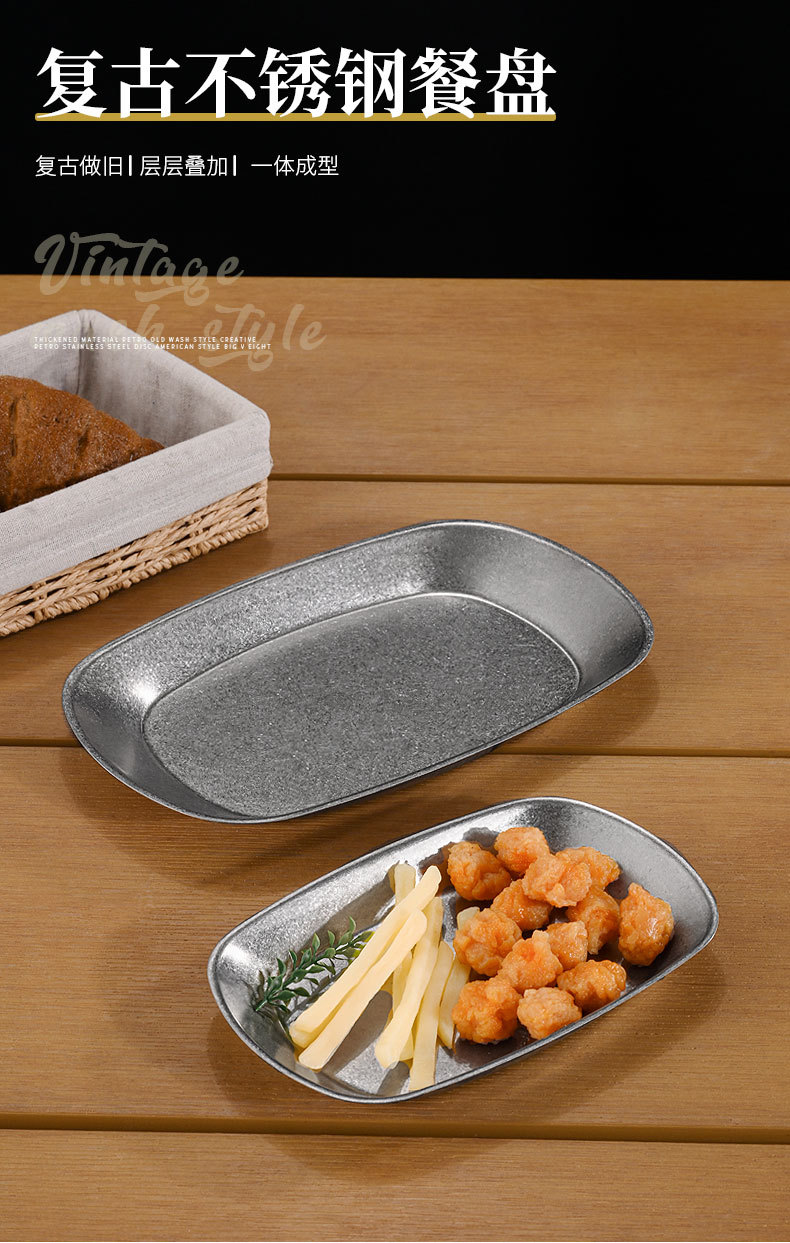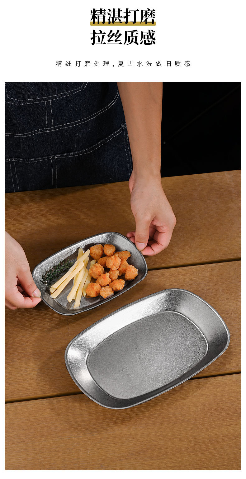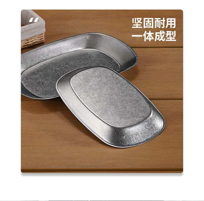 올드 빈티지 산업 스타일 트레이 상업 바베큐 바베큐 플랫 플레이트 야외 과일 디저트 스낵 접시 식기