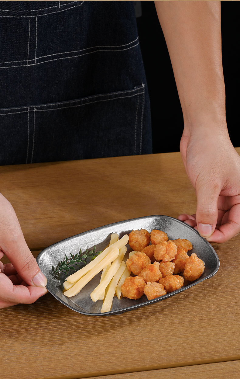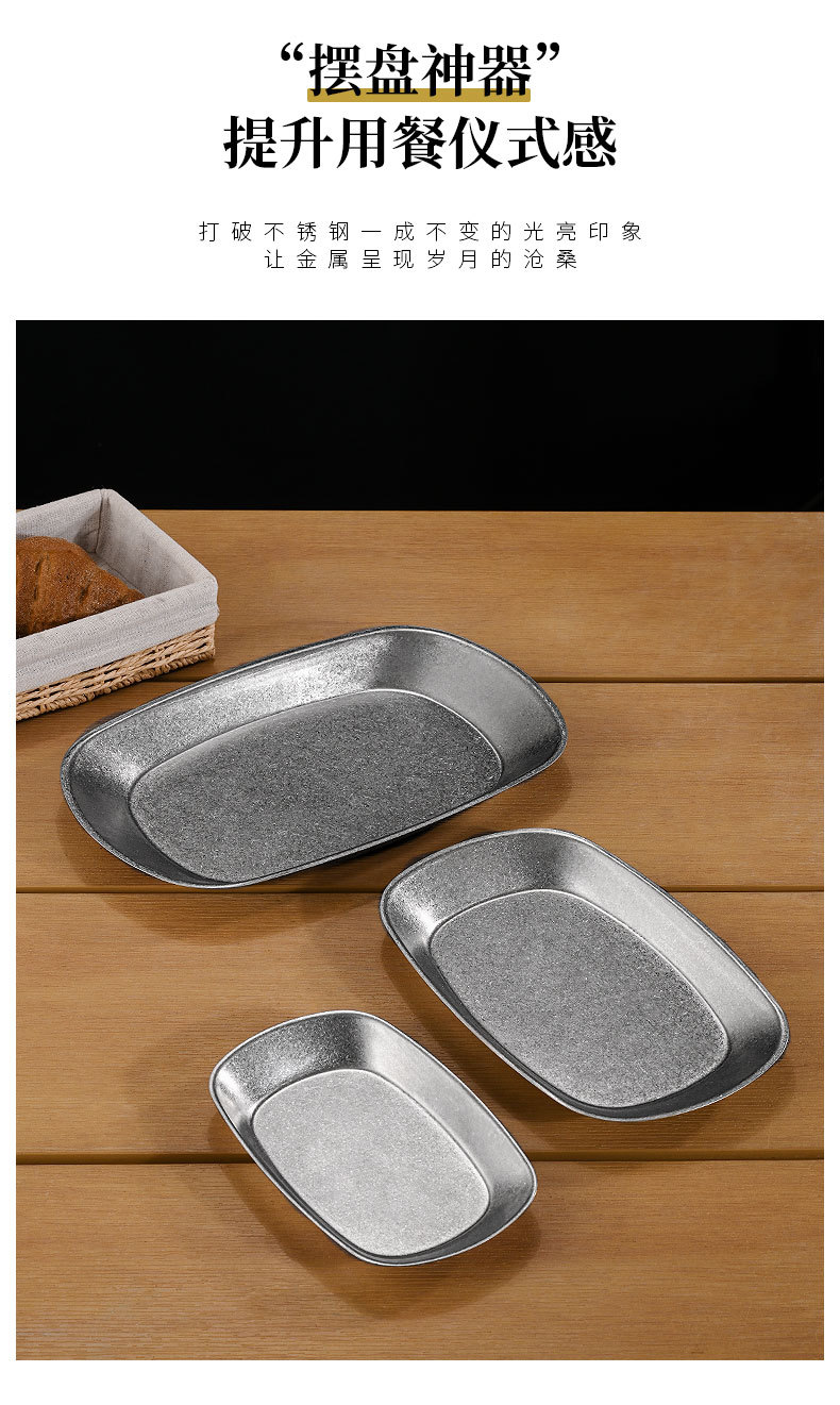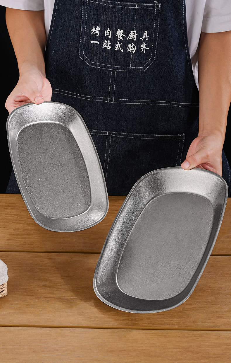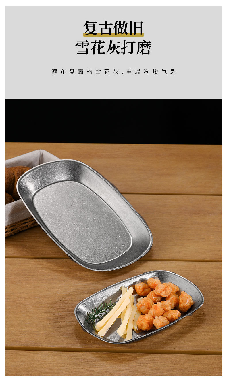 올드 빈티지 산업 스타일 트레이 상업 바베큐 바베큐 플랫 플레이트 야외 과일 디저트 스낵 접시 식기