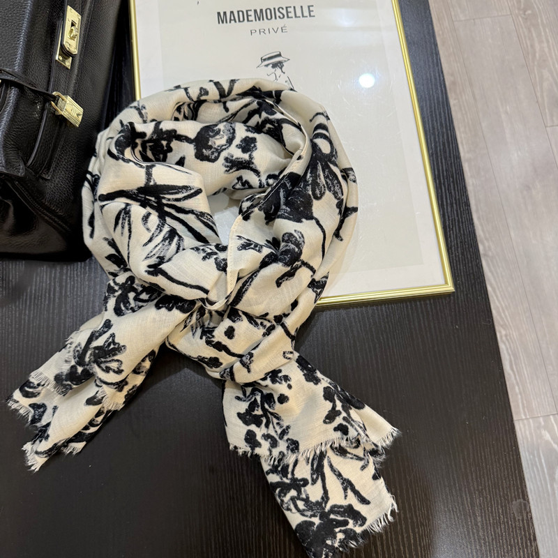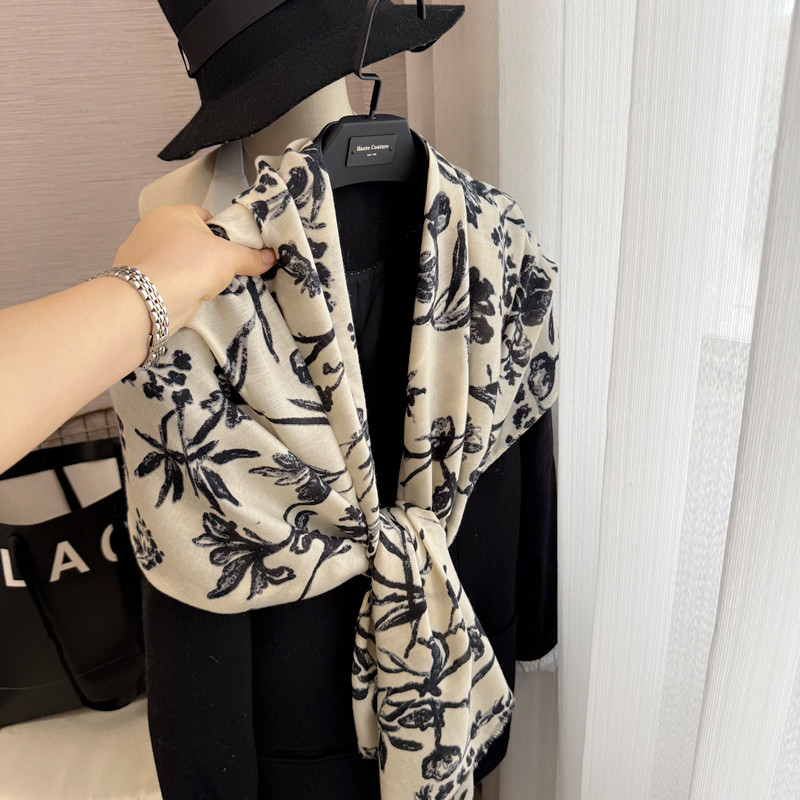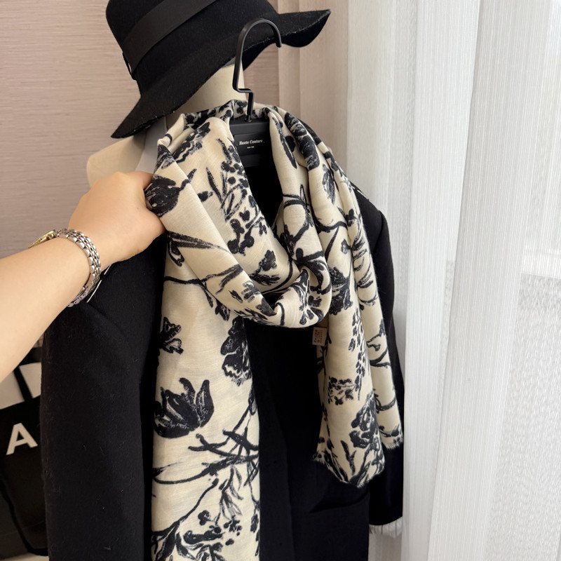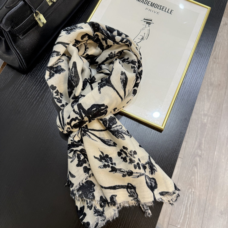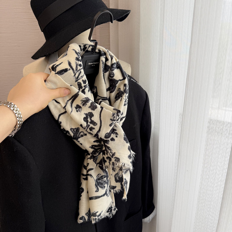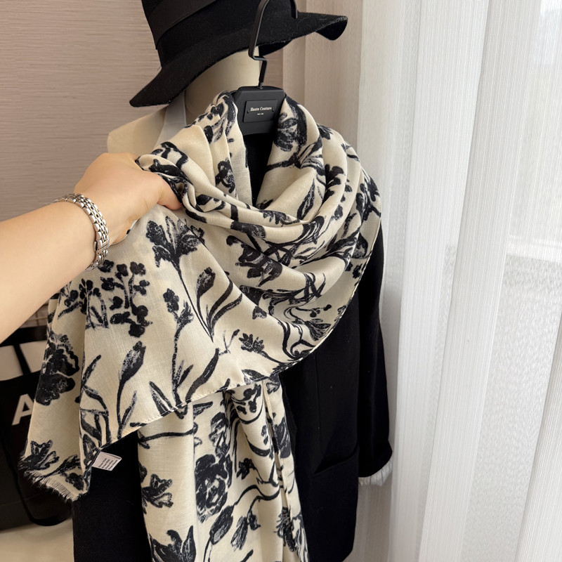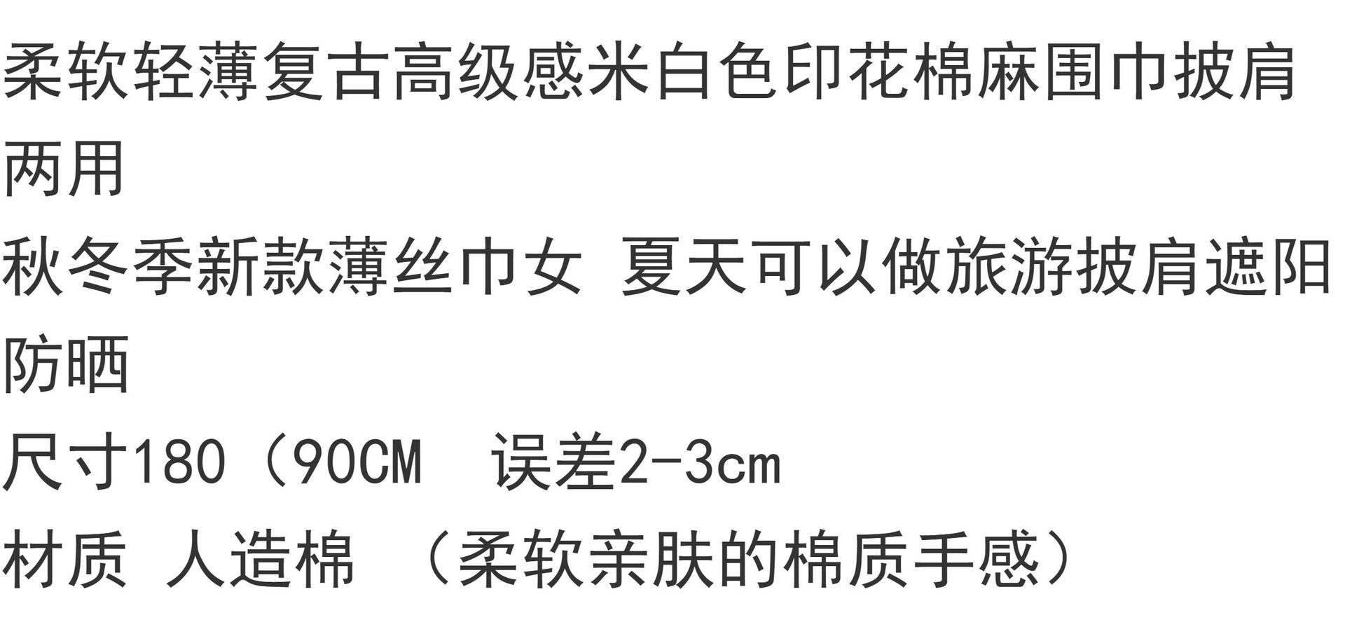 柔软复古高级感米白色印花棉麻围巾披肩两用秋冬季新款轻薄丝巾女