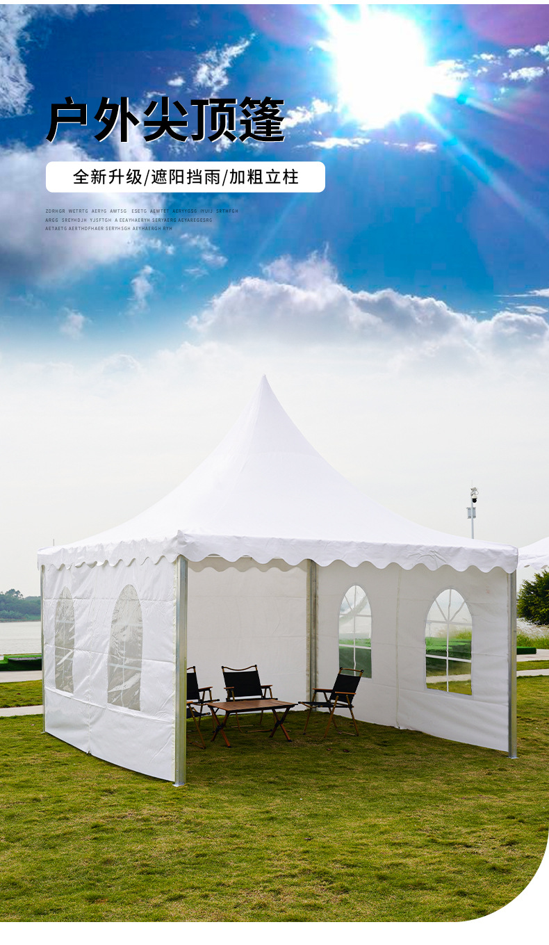유럽식 뾰족한 캐노피 콘 모양의 전시 텐트 해체 햇빛 캐노피 야외 웨딩 비 캐노피 전시 텐트스토어 가기