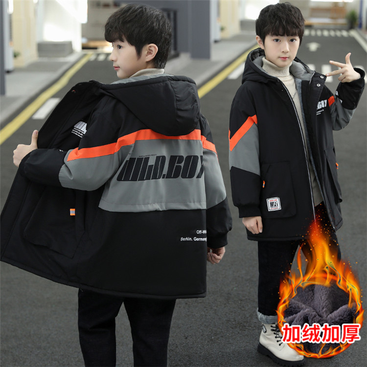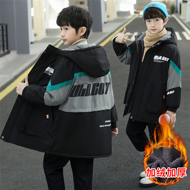 큰 어린이 코트 2024 가을과 겨울 유행 파이크 옷을 기모 소년 충전 옷 따뜻한 코트스토어 가기