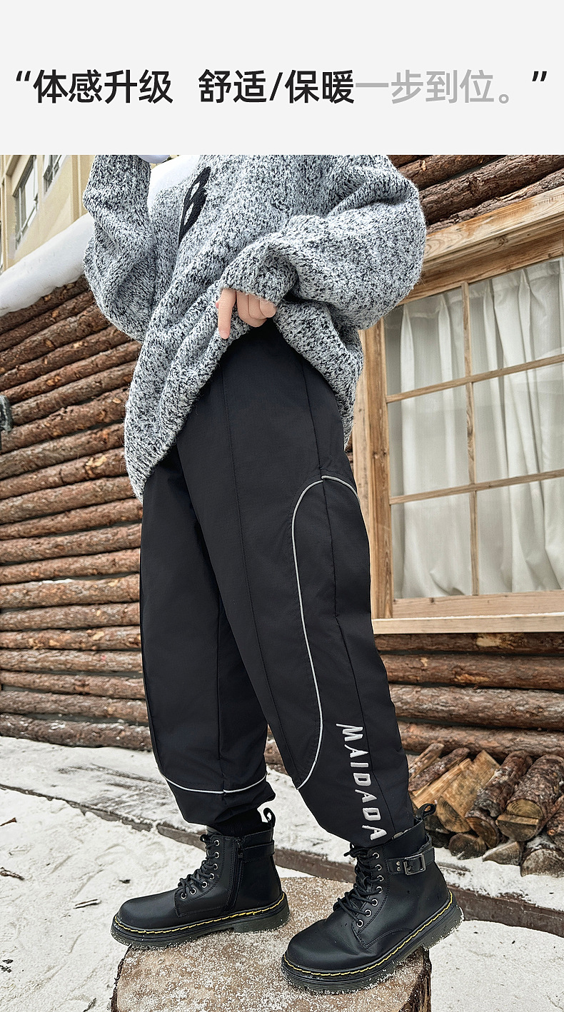 어린이를위한 새로운 GB 90 흰 오리 바지 2024 겨울 방수 소년의 따뜻한 스포츠 두꺼운 따뜻한 바지스토어 가기