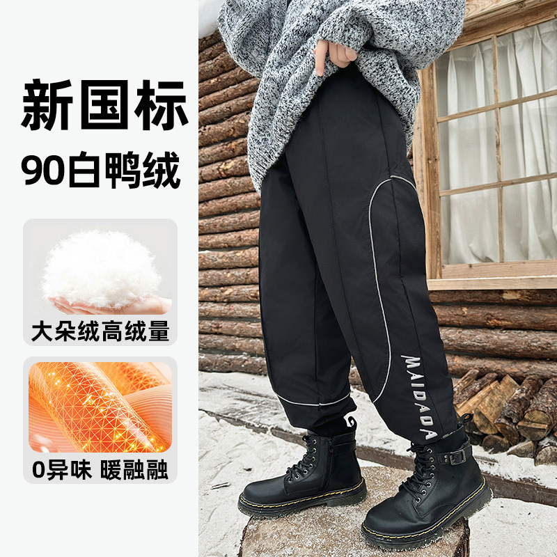 어린이를위한 새로운 GB 90 흰 오리 바지 2024 겨울 방수 소년의 따뜻한 스포츠 두꺼운 따뜻한 바지