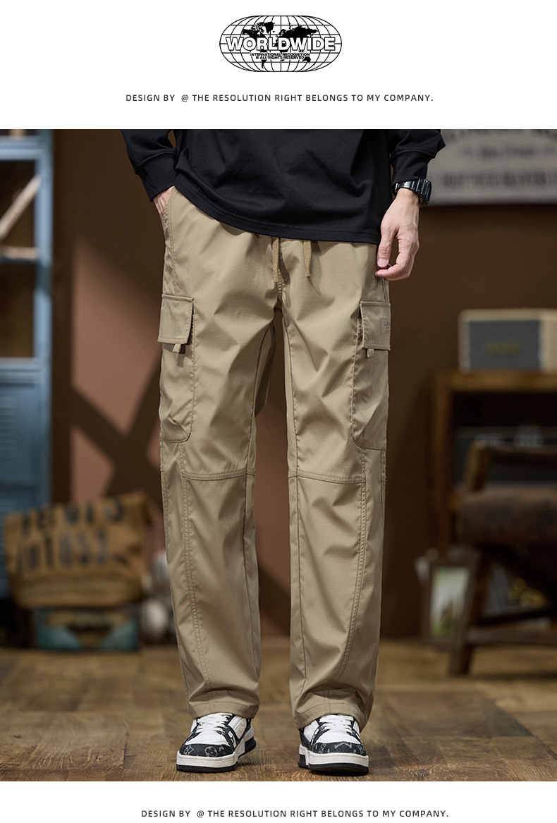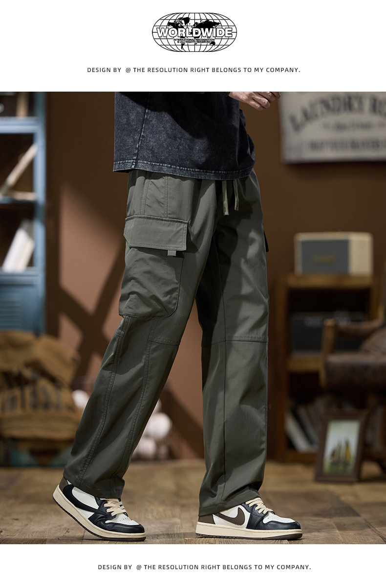 남성용 캐주얼 멀티 포켓 팬츠, 남성용 발수 패딩 팬츠, 남성용 기능성 오버올, 남성용 루즈한 아웃도어 스포츠 롱 팬츠