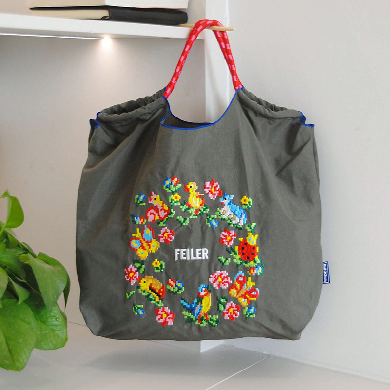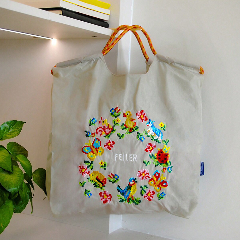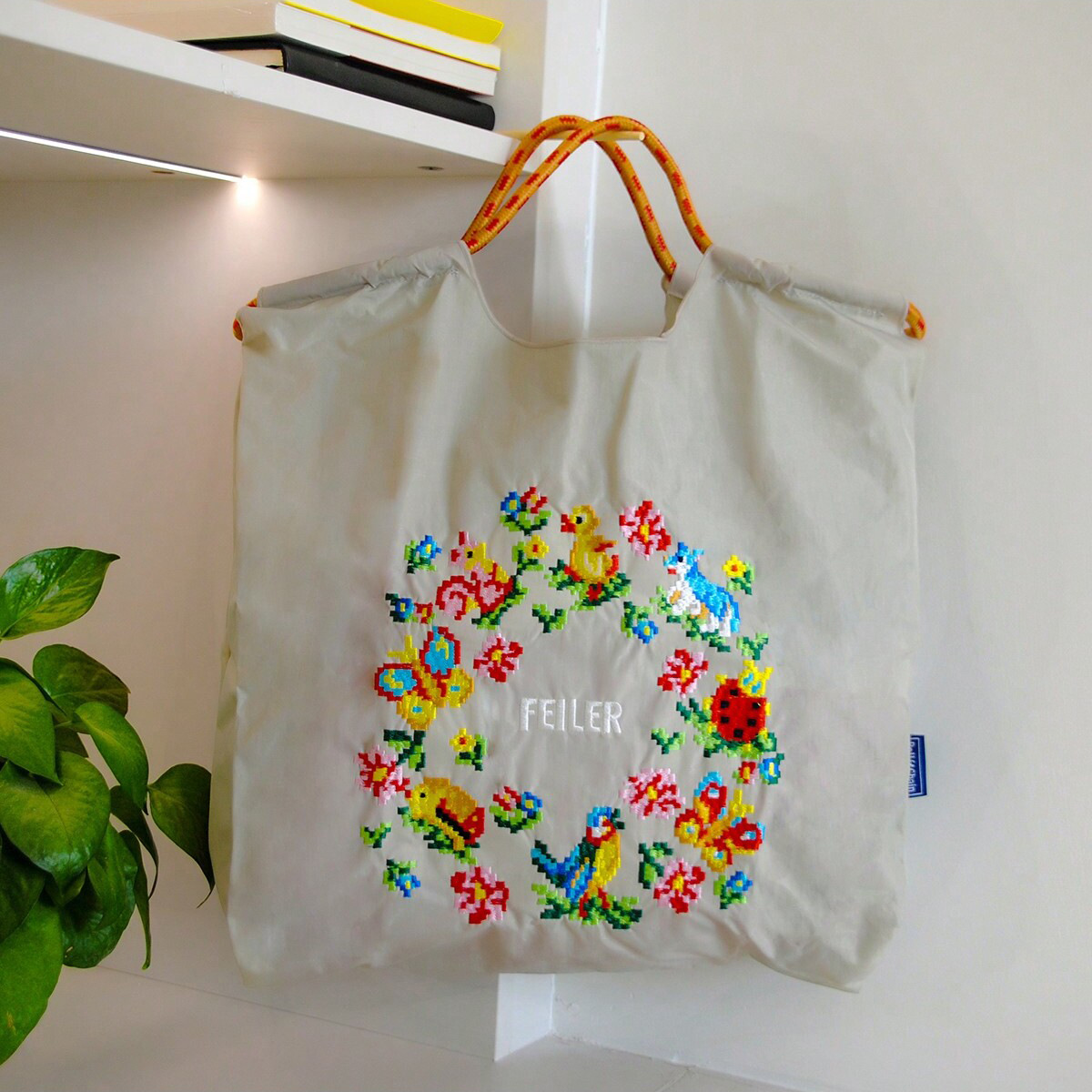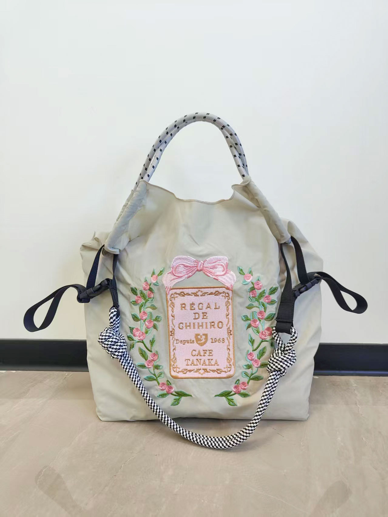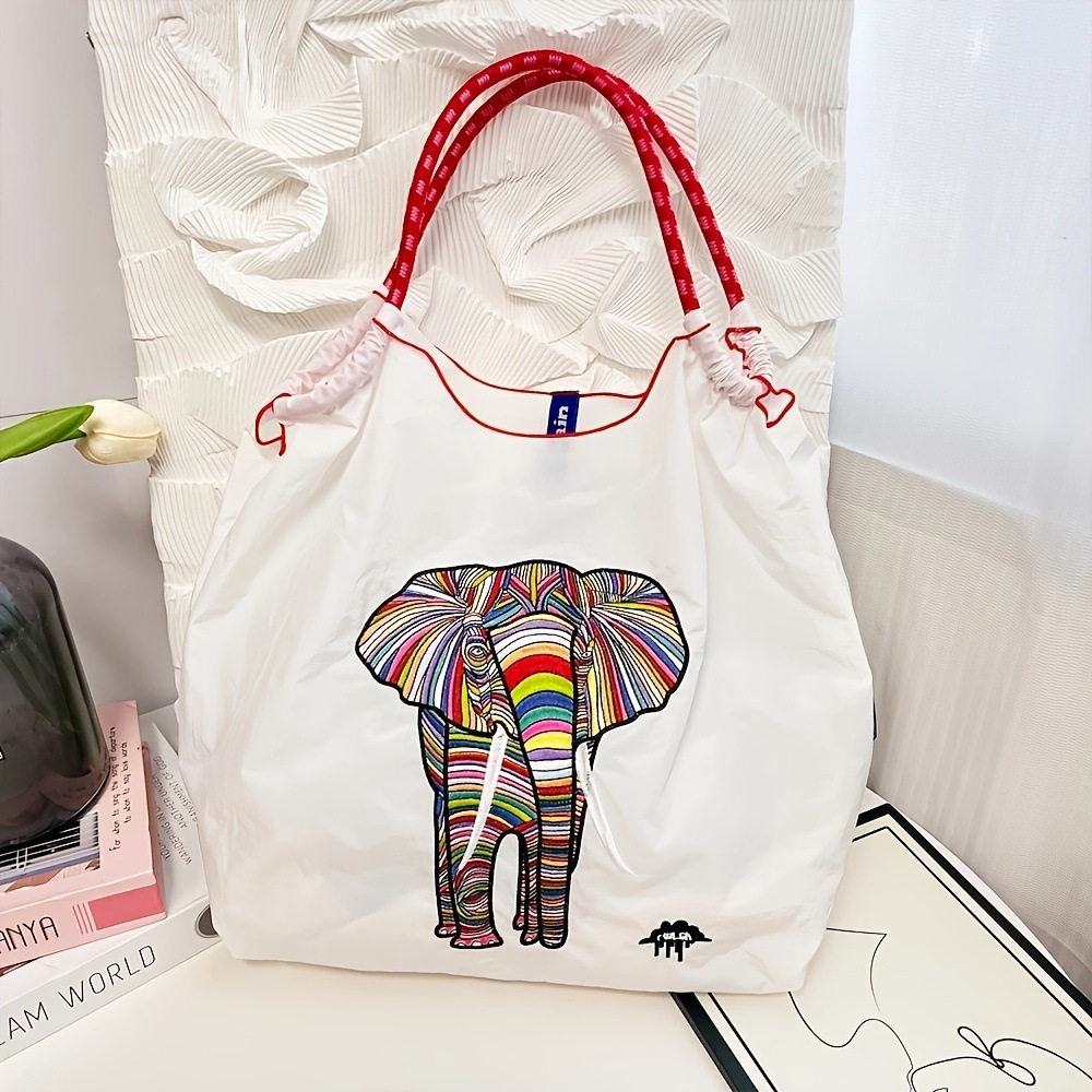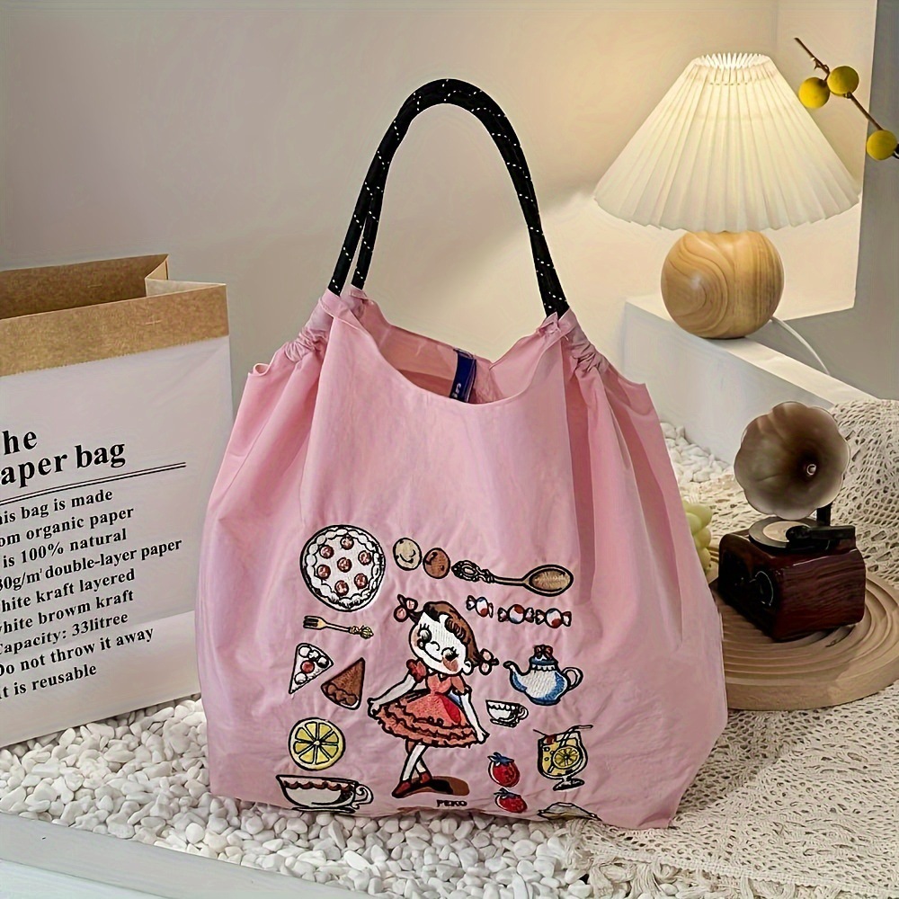 새로운 나일론 자수 가방 여성용 토트 백 대용량 캔버스 가방 노란색 오리 쇼핑백 숄더 백 핸드백스토어 가기