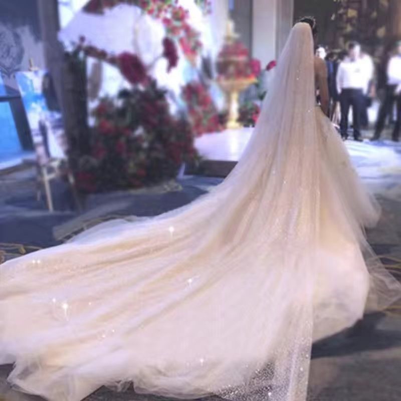 큰 꼬리 공장 직접 슈퍼 더블 웨딩 공장 밝은 원사 직접 긴 슈퍼 플래시 메인 웨딩 원피스 모리 머리 장식