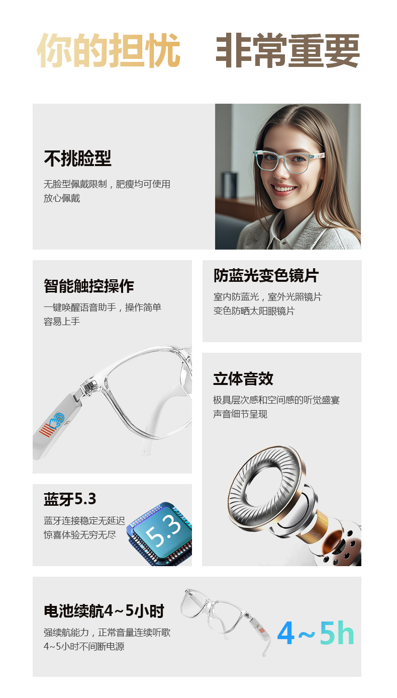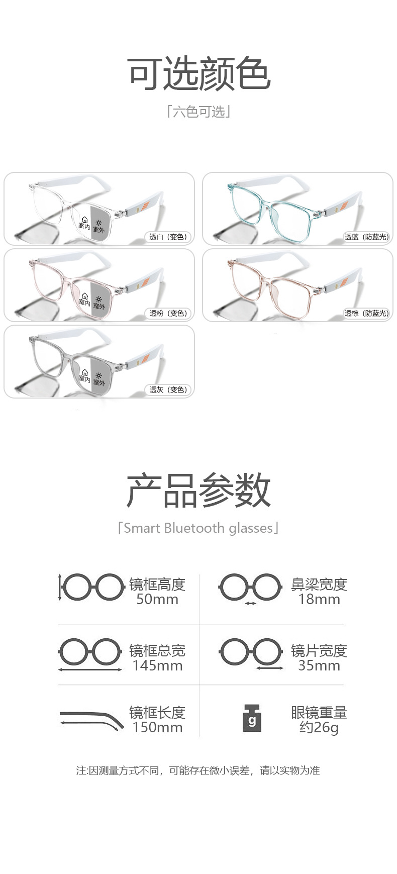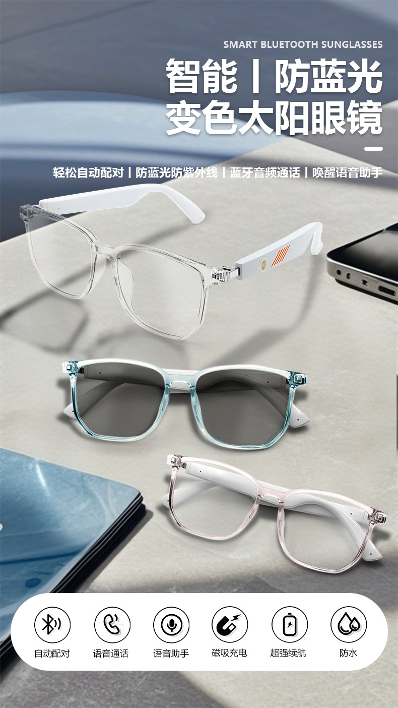 크로스보더 스마트 블루투스 AI 안경 Yance 야외 변색 안경 인기 헤드폰 음악 감상 통화 블루라이트 차단 오디오스토어 가기