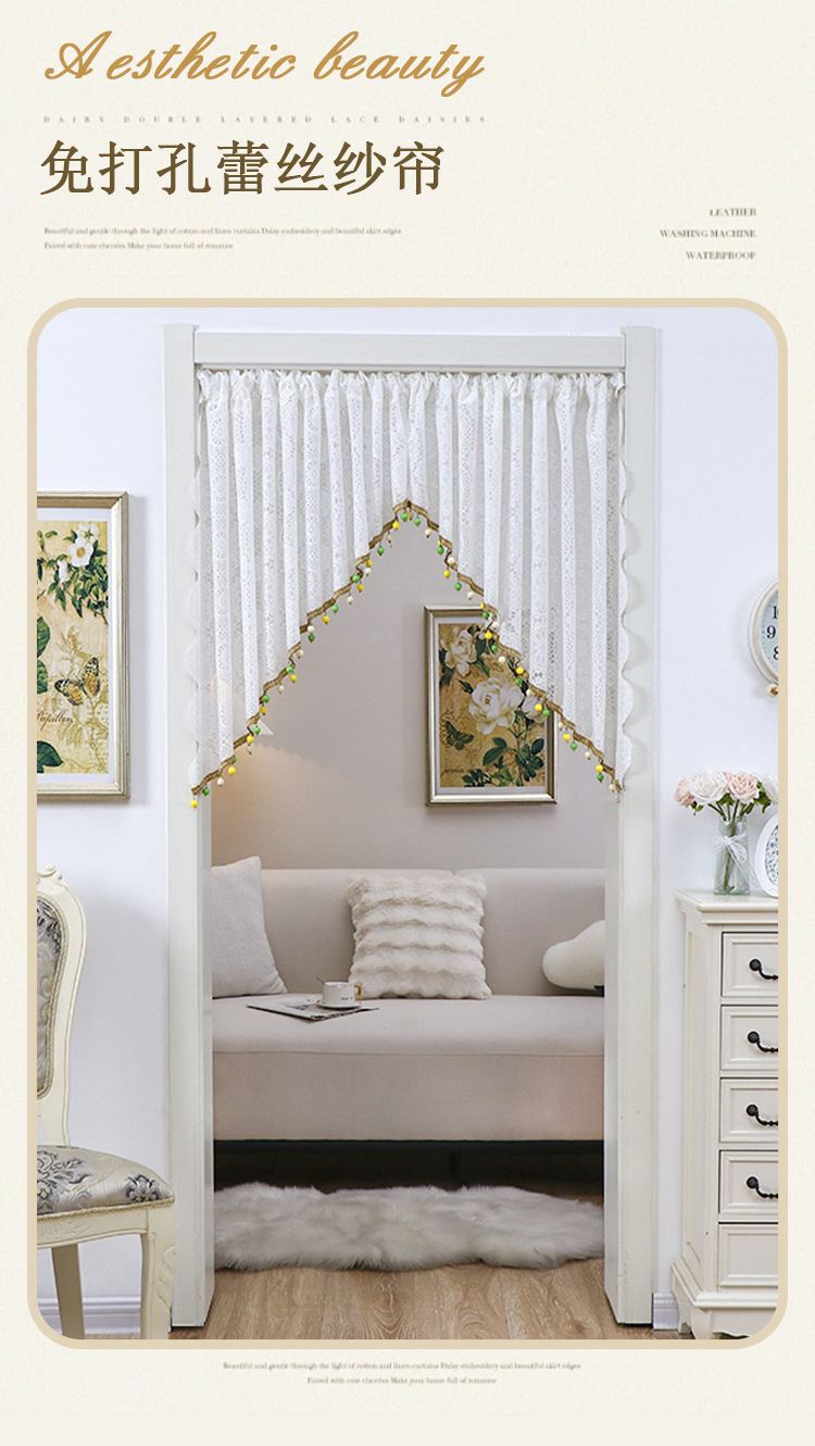 새로운 프랑스 스타일 레이스 도어 커튼 절반 커튼 파티션 커튼 침실 방 대피소 커튼 소녀 거즈 커튼 펀치 프리 작은 커튼스토어 가기