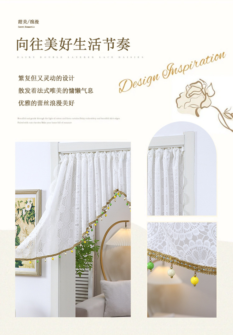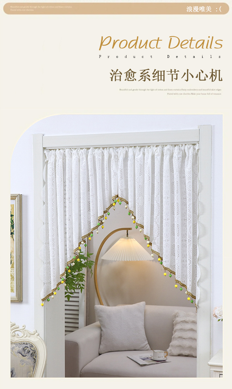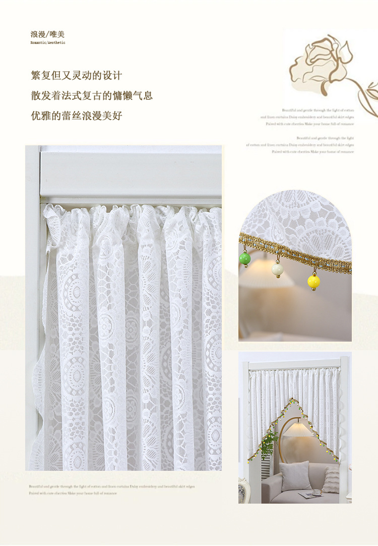 새로운 프랑스 스타일 레이스 도어 커튼 절반 커튼 파티션 커튼 침실 방 대피소 커튼 소녀 거즈 커튼 펀치 프리 작은 커튼