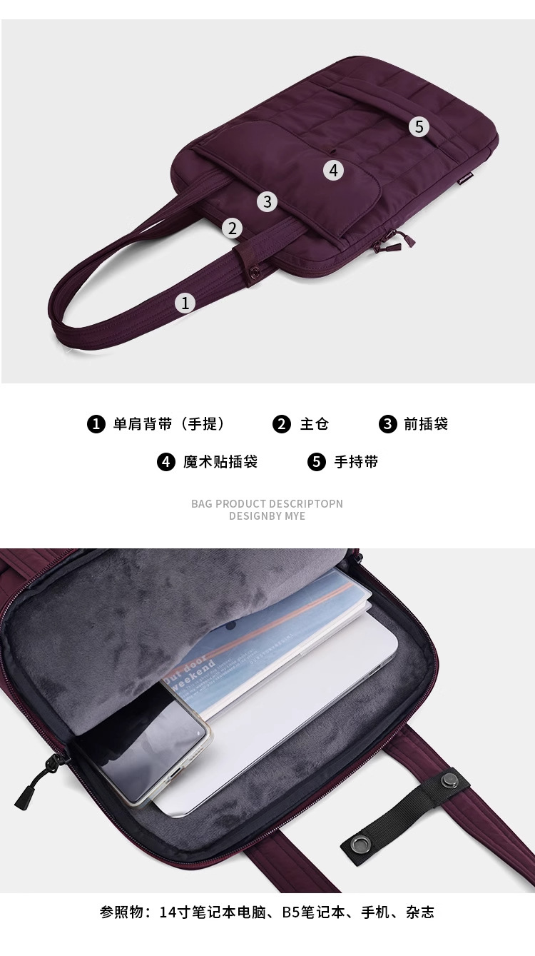 패셔너블한 캐주얼 숄더 컴퓨터 가방 다기능 14inch 토트백 휴대용 가볍고 간단한 충격 방지 방수 컴퓨터 가방