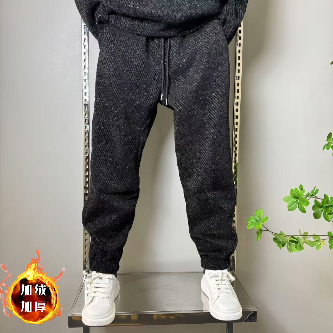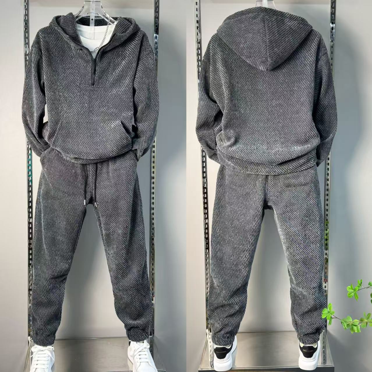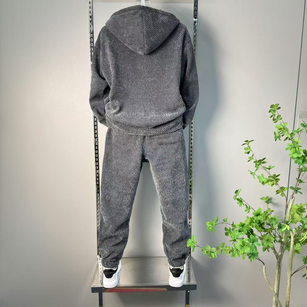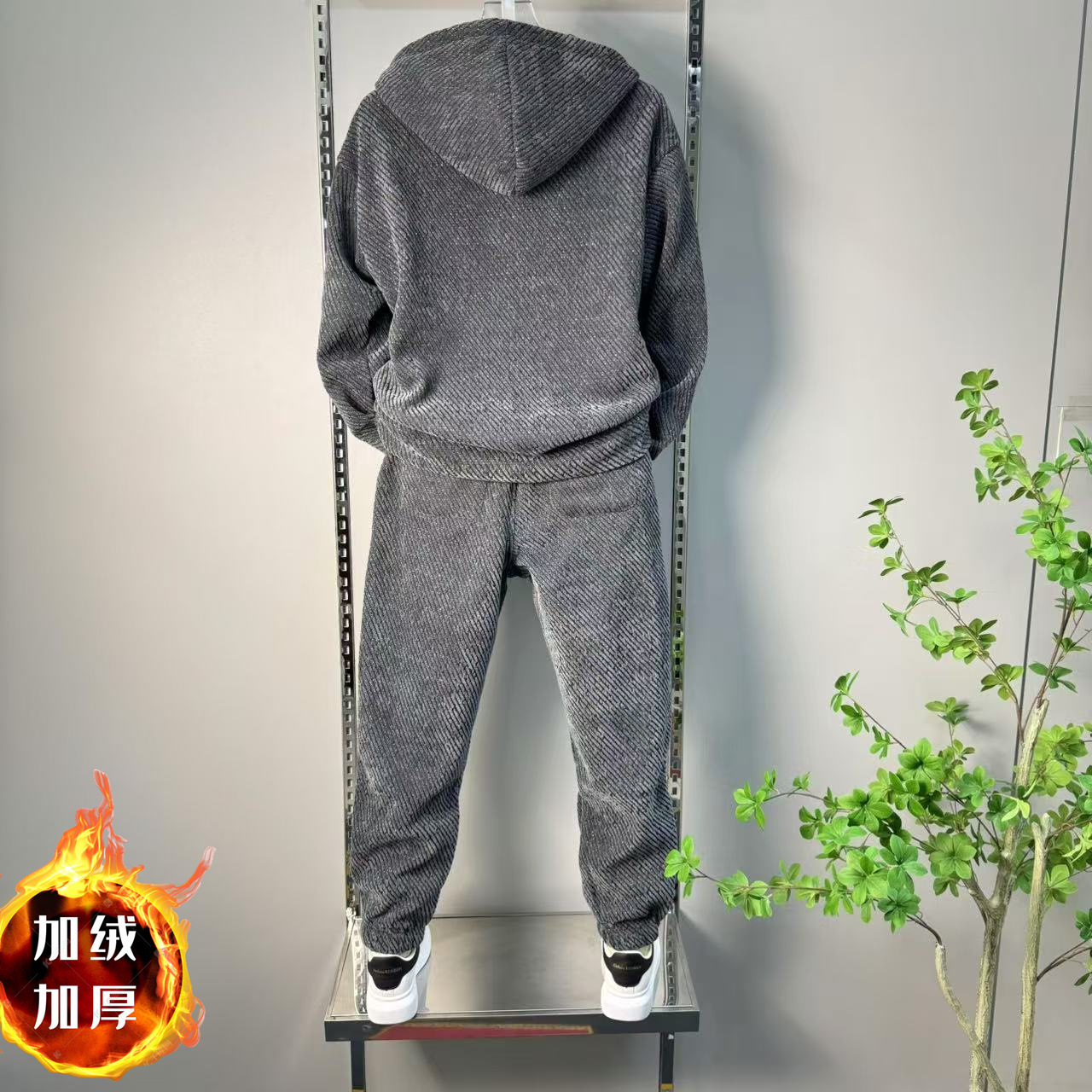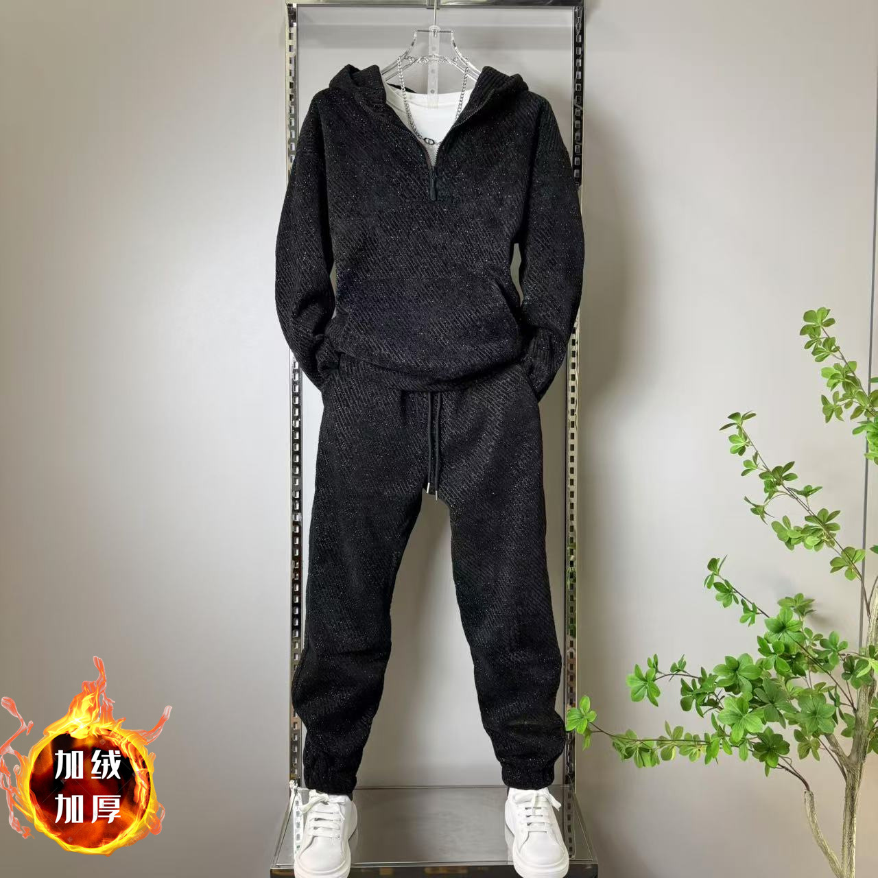 겨울 남자 기모 Chenille 실버 두꺼운 캐주얼 스포츠 세트 후드 스웨트 팬츠 느슨한 두 조각