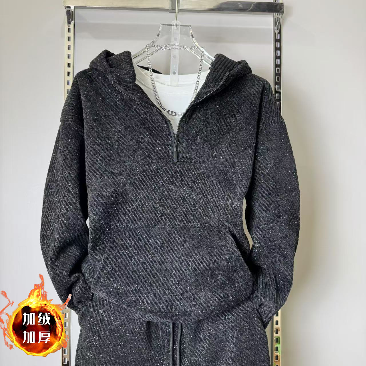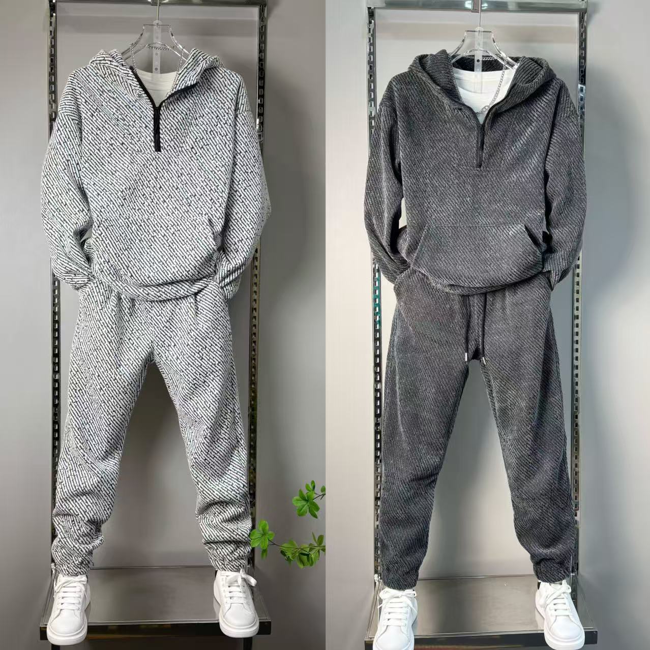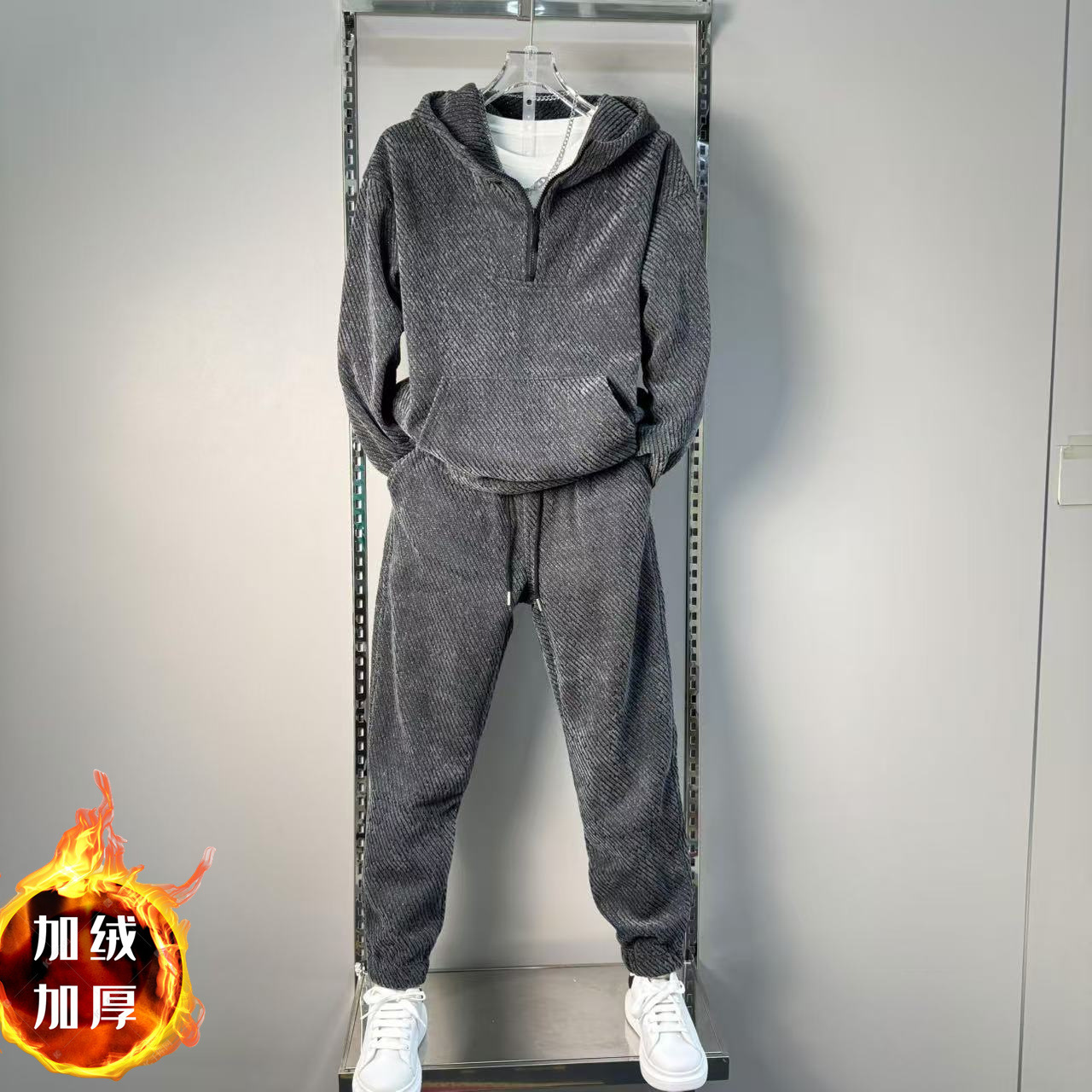 겨울 남자 기모 Chenille 실버 두꺼운 캐주얼 스포츠 세트 후드 스웨트 팬츠 느슨한 두 조각스토어 가기
