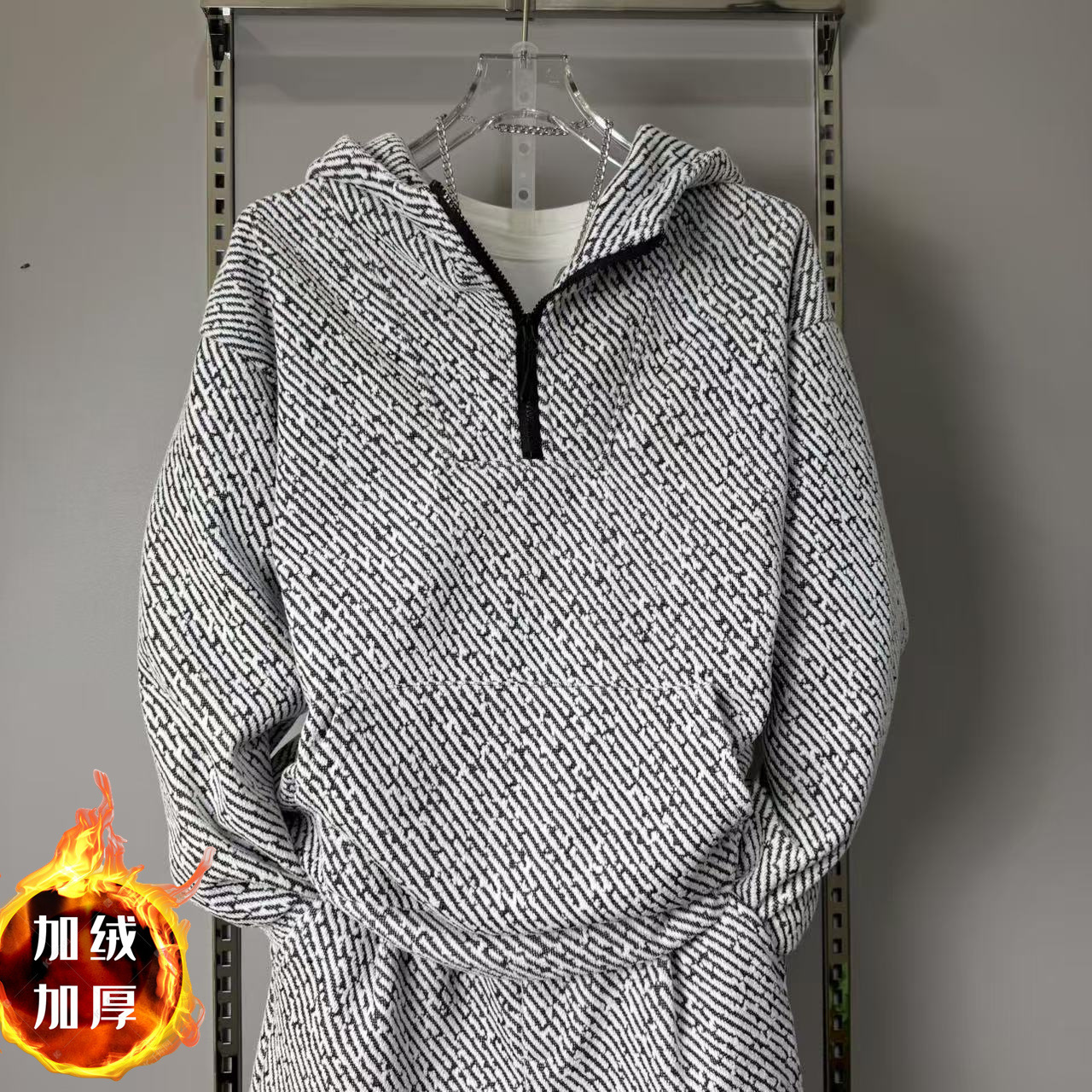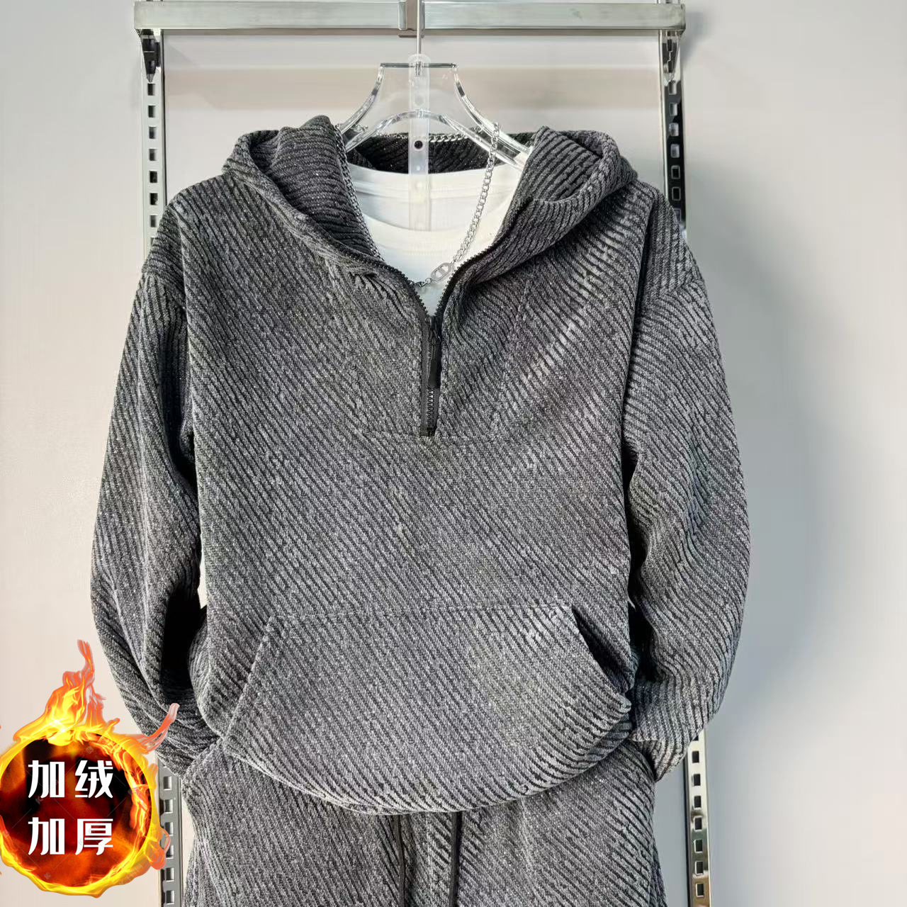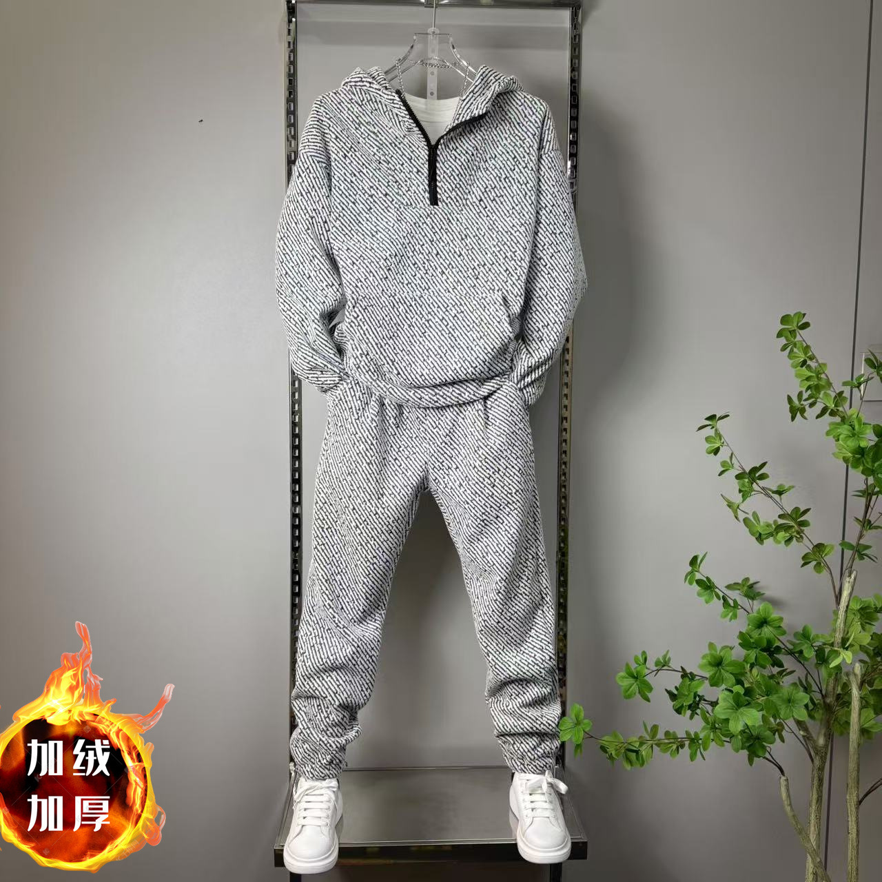 겨울 남자 기모 Chenille 실버 두꺼운 캐주얼 스포츠 세트 후드 스웨트 팬츠 느슨한 두 조각스토어 가기