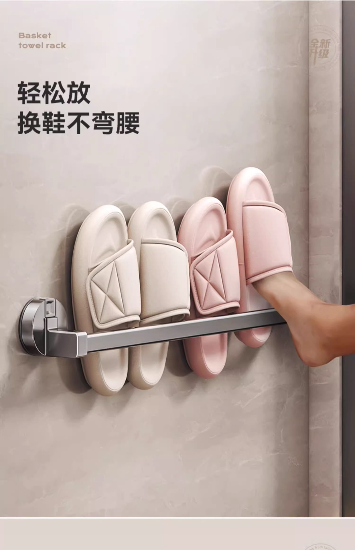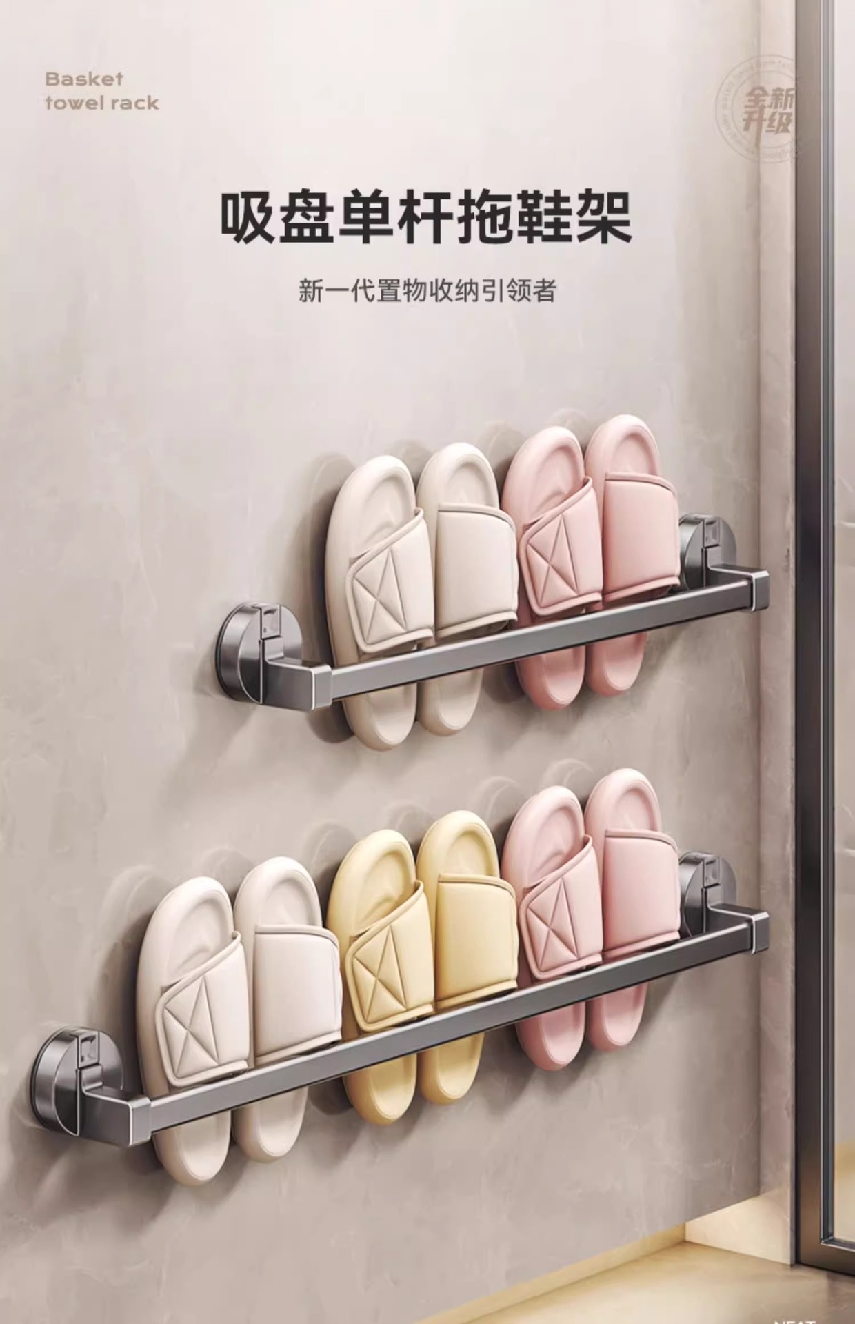 석션 컵 슬리퍼 랙 욕실 펀치가없는 화장실 보관 랙 신발 서랍 보관 아티팩트 화장실 벽 교수형 랙