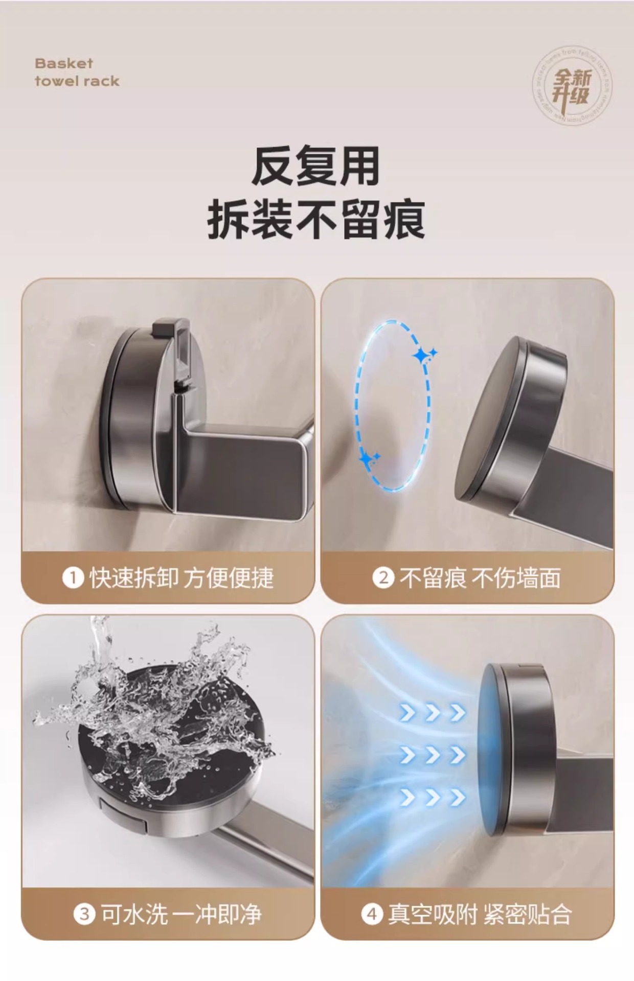 • 흡착컵형 건그레이 슬리퍼걸이 3인용 모델