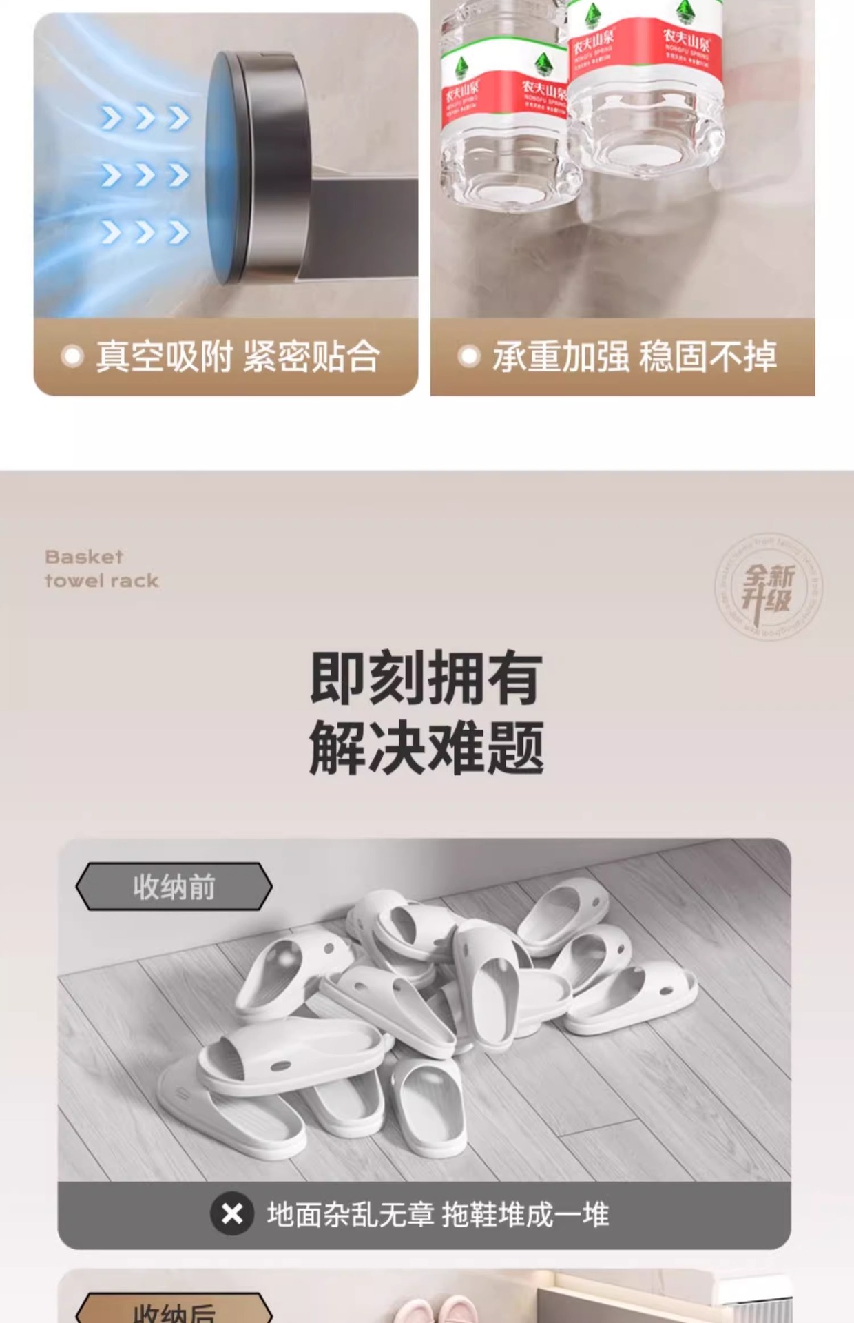 석션 컵 슬리퍼 랙 욕실 펀치가없는 화장실 보관 랙 신발 서랍 보관 아티팩트 화장실 벽 교수형 랙스토어 가기