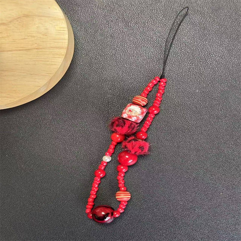 • [레드 레오파드 프린트 비즈 퍼 볼] 끈