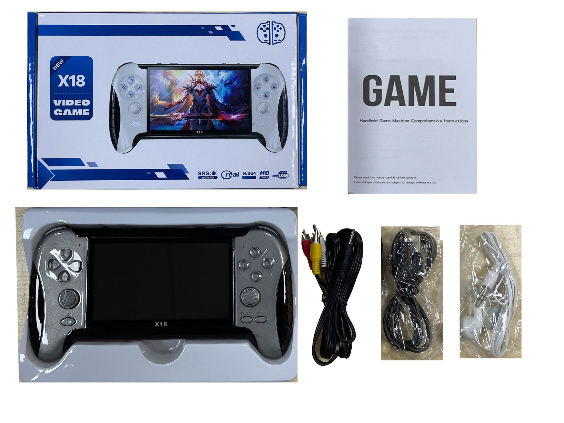 국경을 넘는 새로운 X18 핸드 헬드 게임기 4.3 인치 HD 대형 스크린은 9 개의 시뮬레이터와 수천 개의 클래식 게임을 지원합니다.